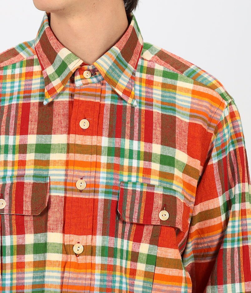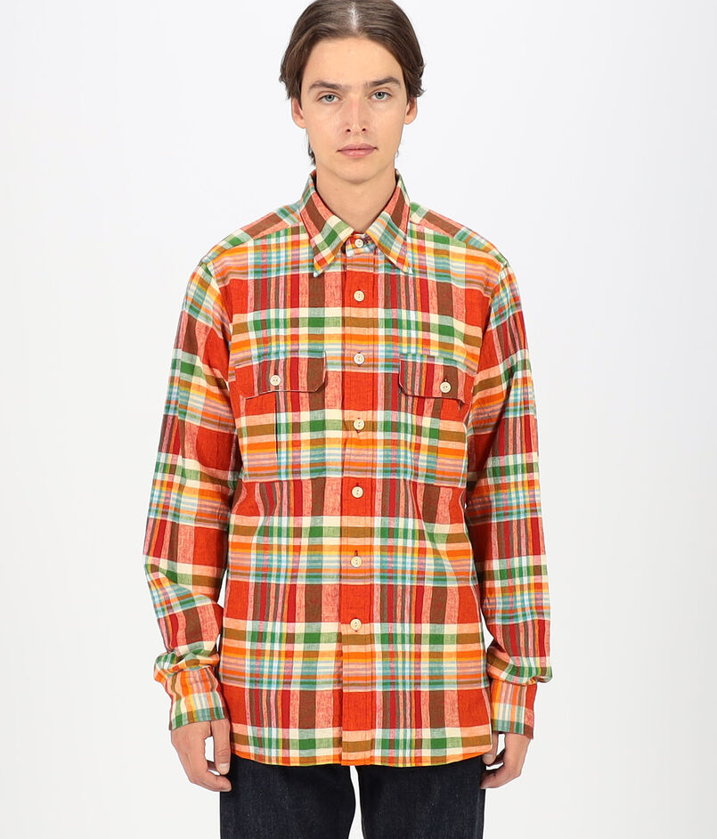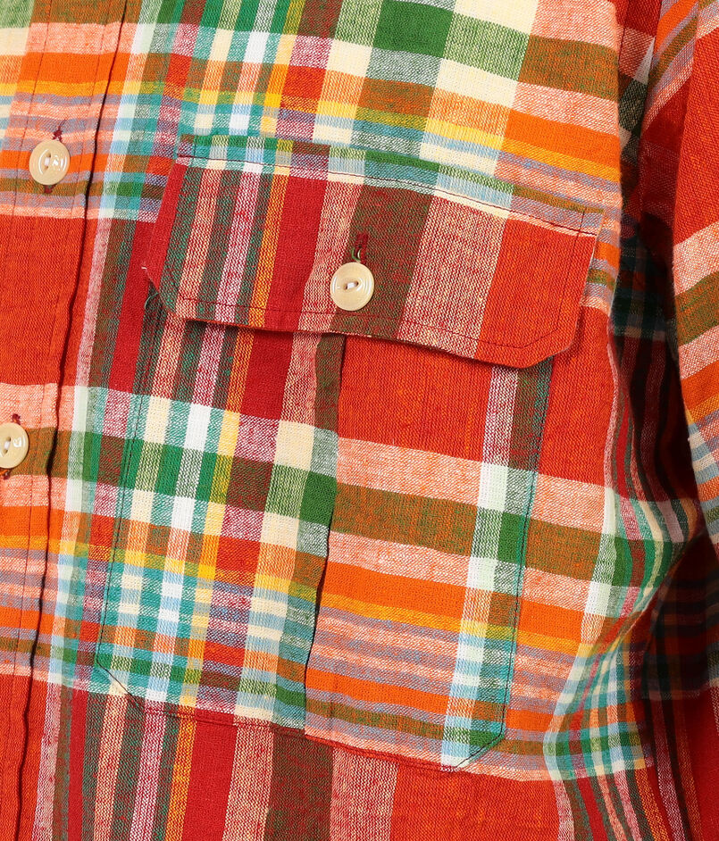Drake's コットンリネン ダブルポケット レギュラーカラーシャツ