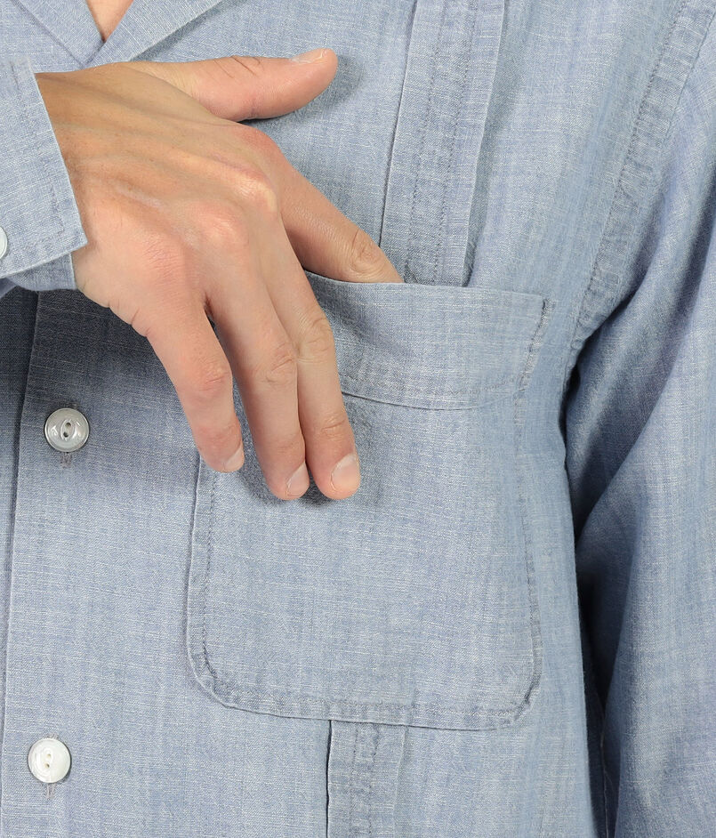 リラックス感のあるオープンカラーシャツ。インナーとしても、羽織りとしても活躍する一着。