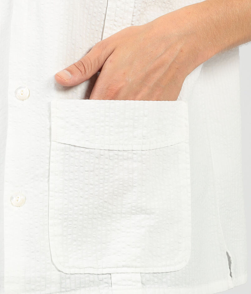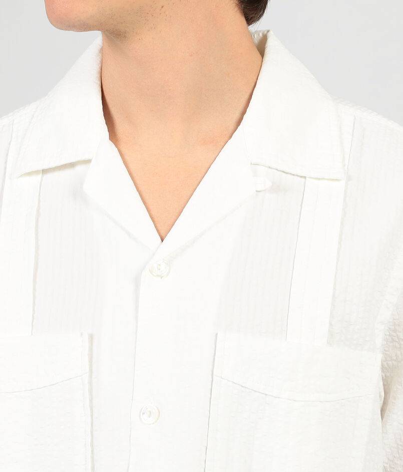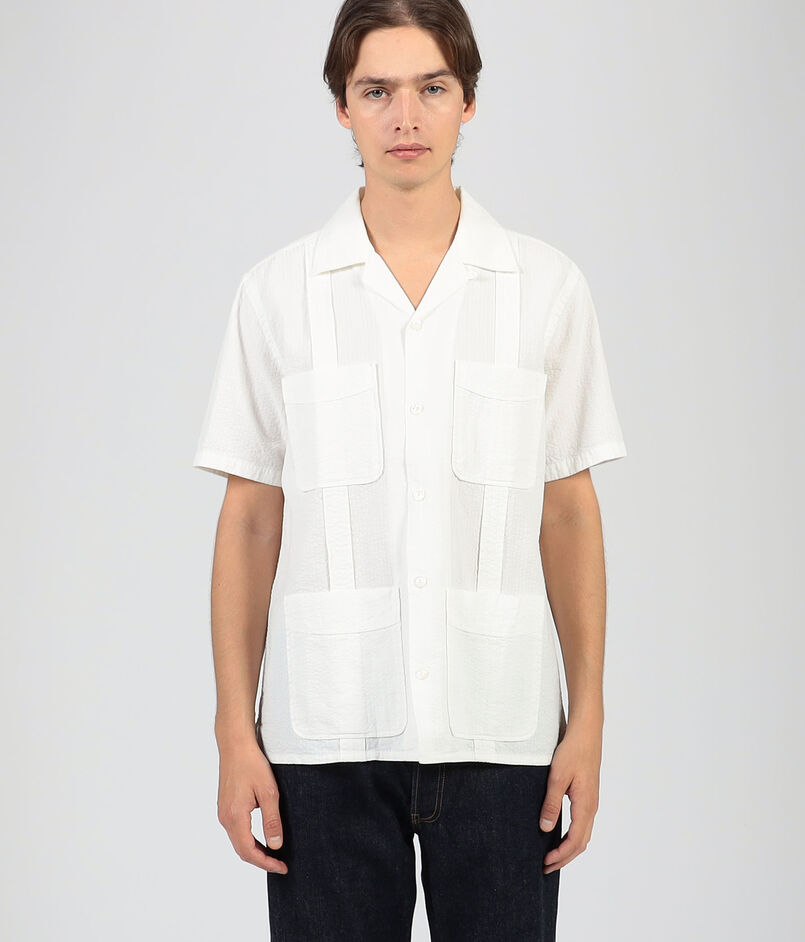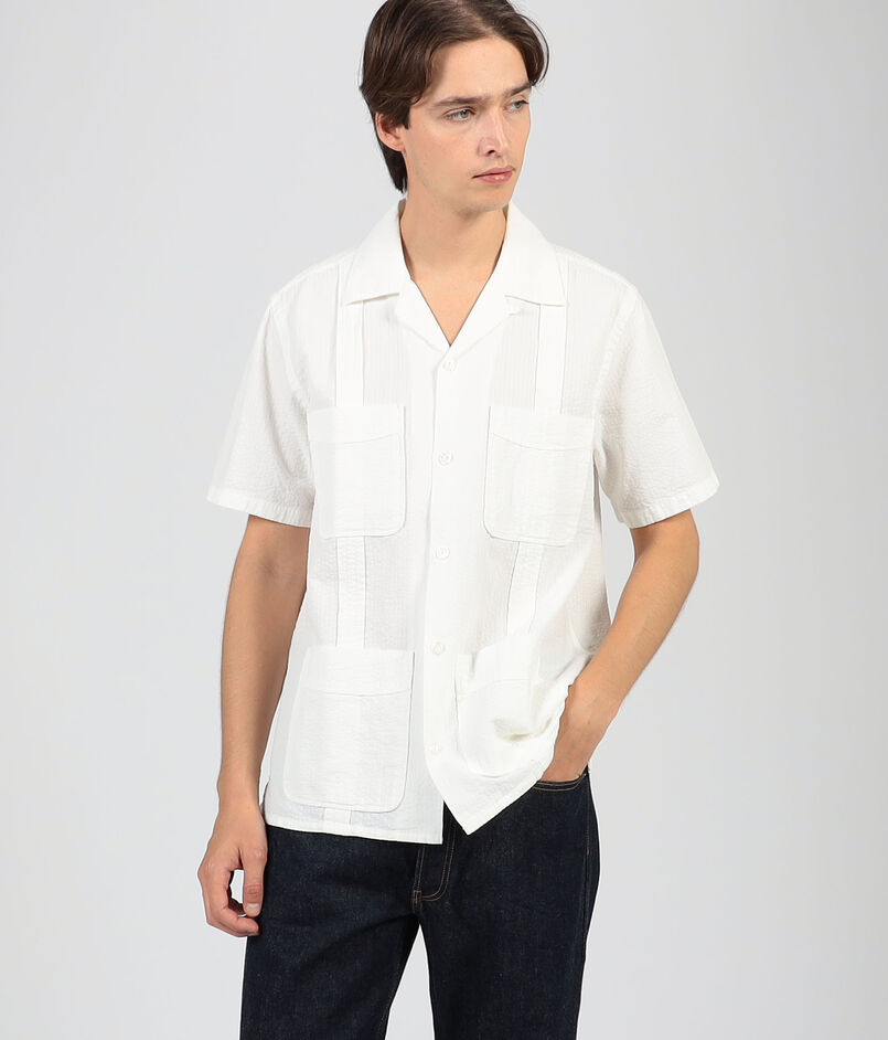 コットンリネン素材のキューバシャツ。