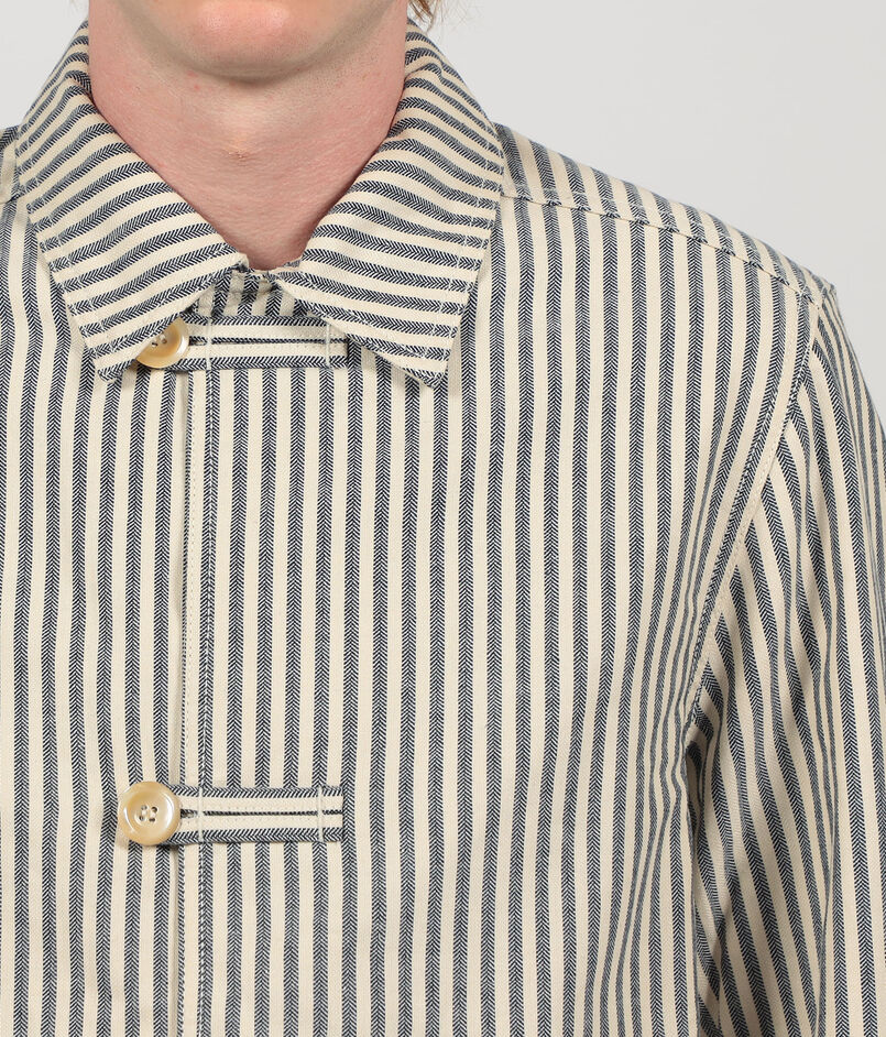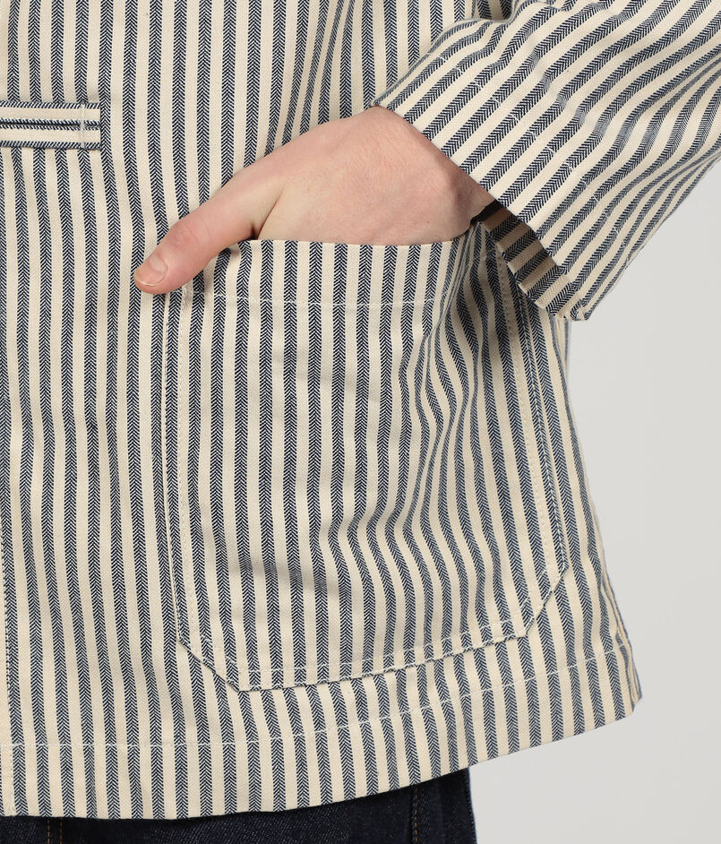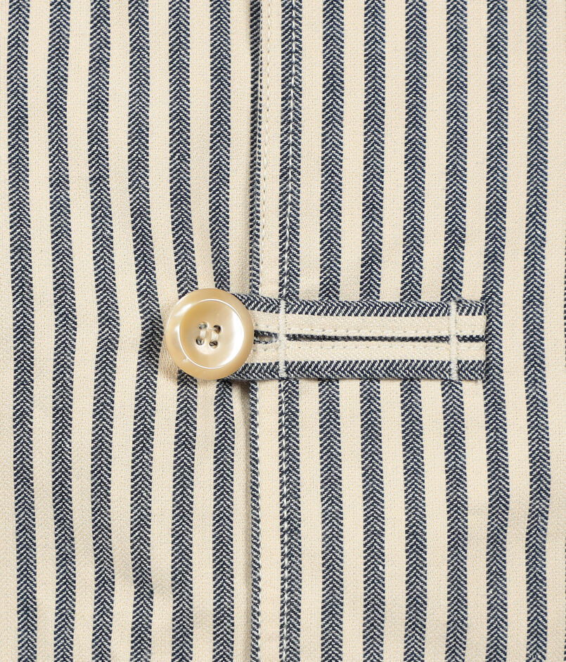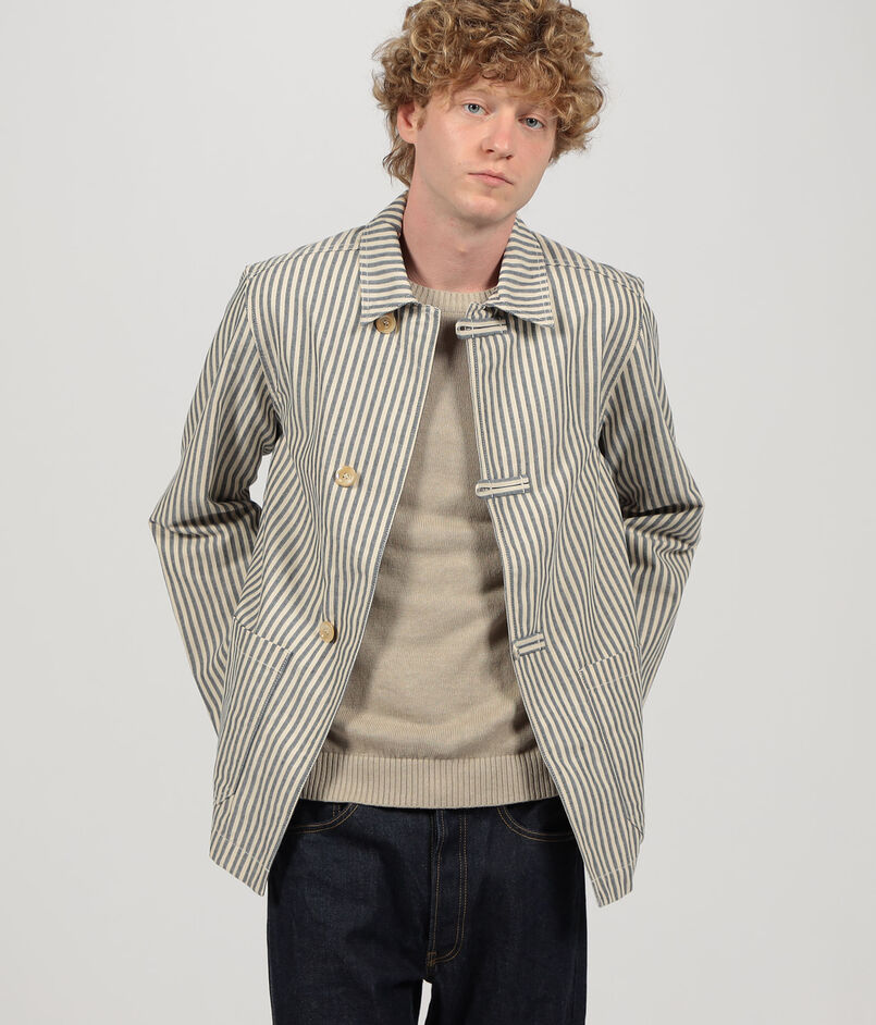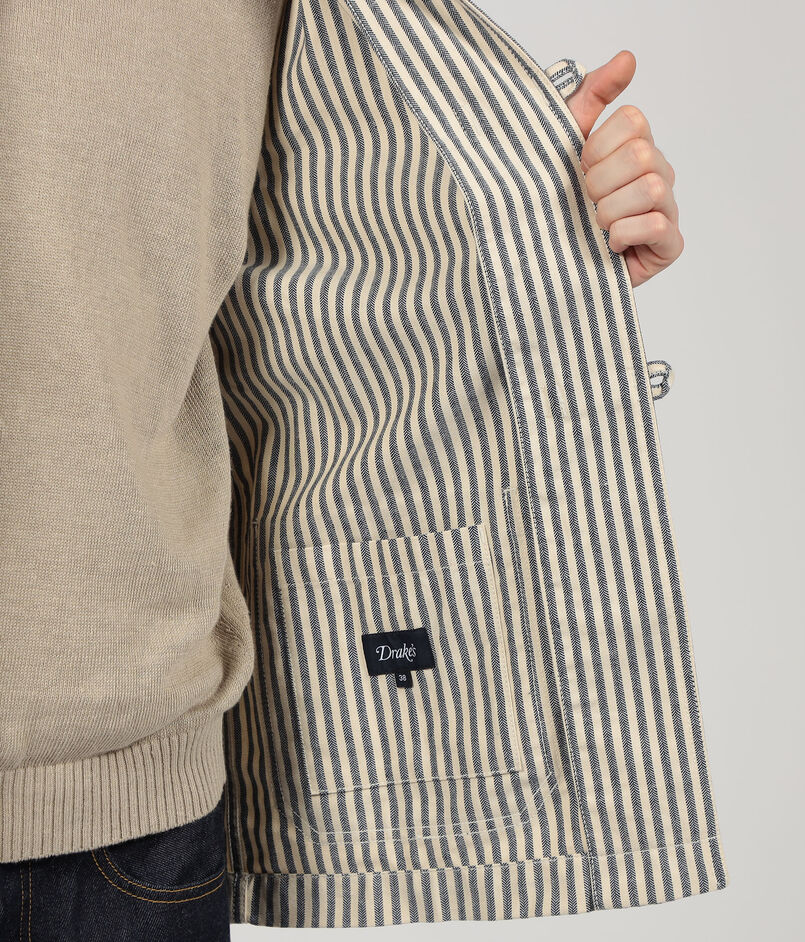 Drake’s ブルー&エクリュストライプ コットンリネン デッキチョアジャケット