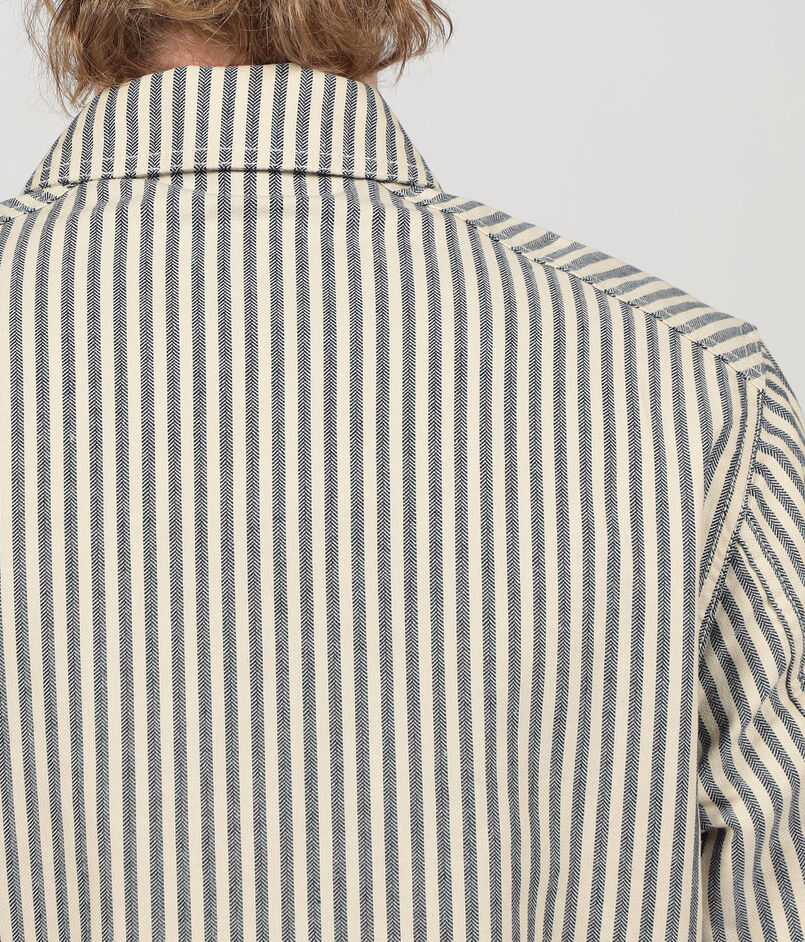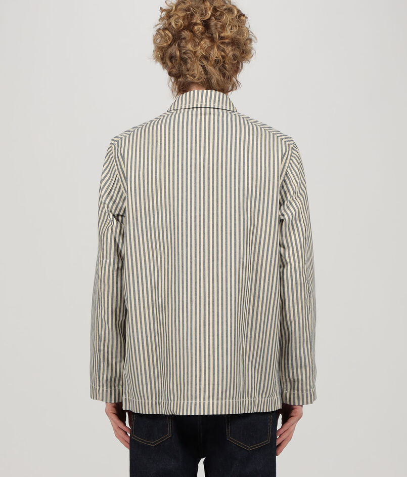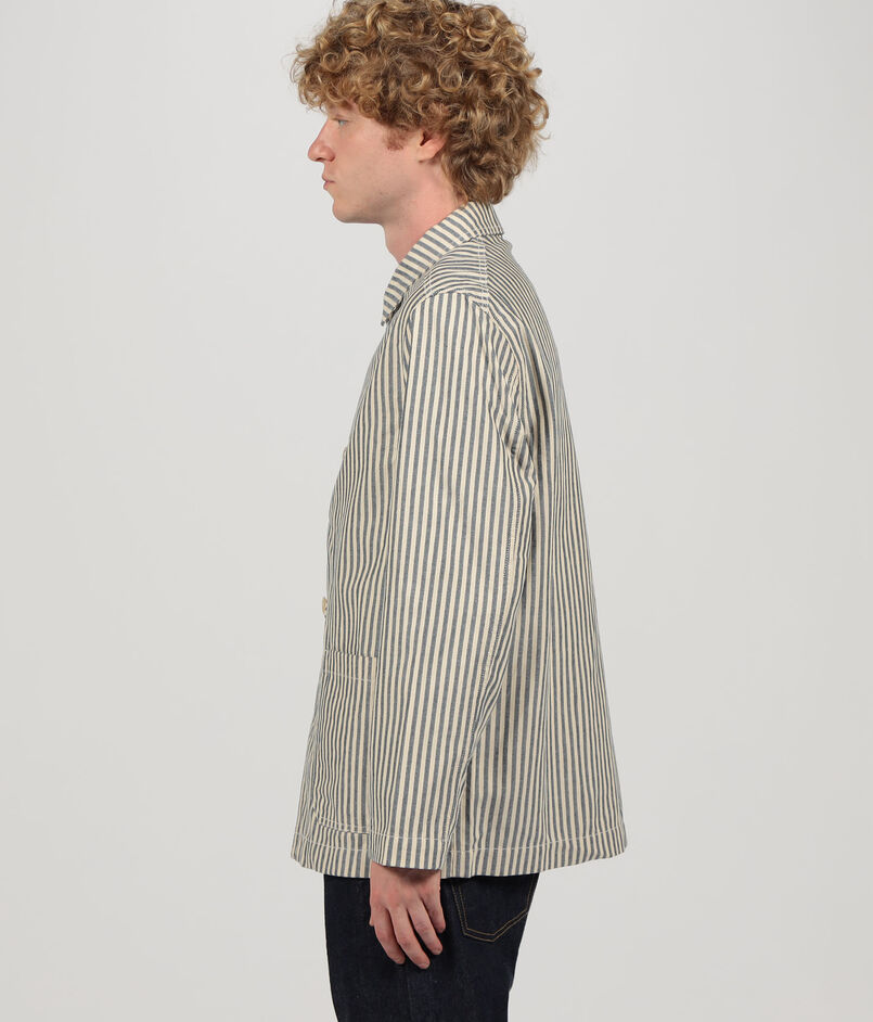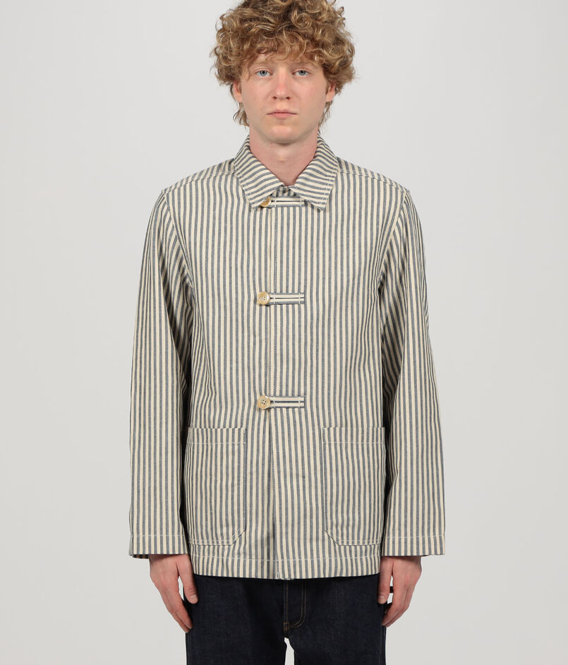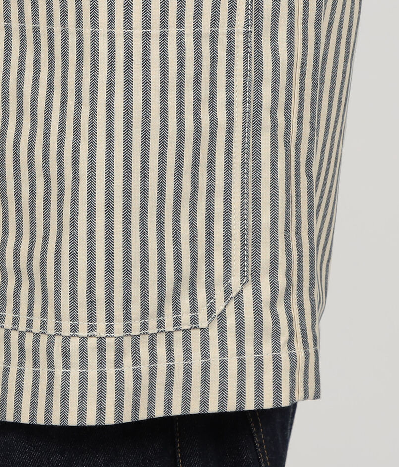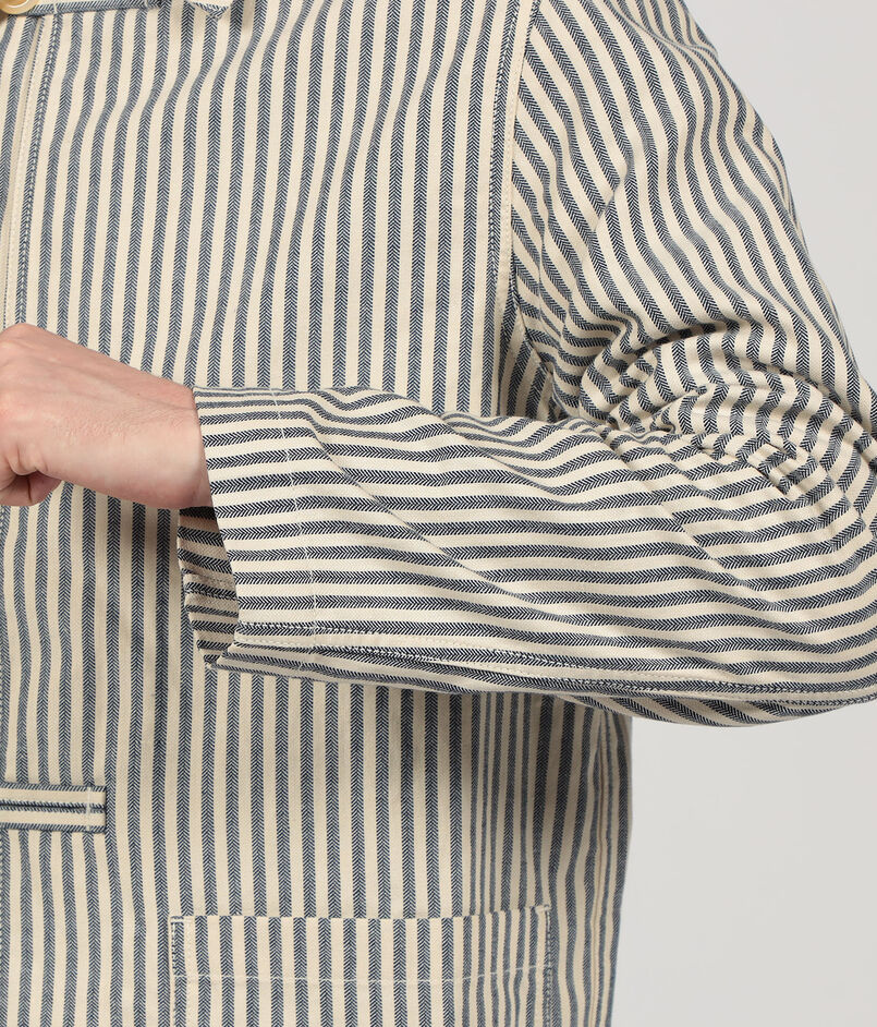 Drake’s ブルー&エクリュストライプ コットンリネン デッキチョアジャケット