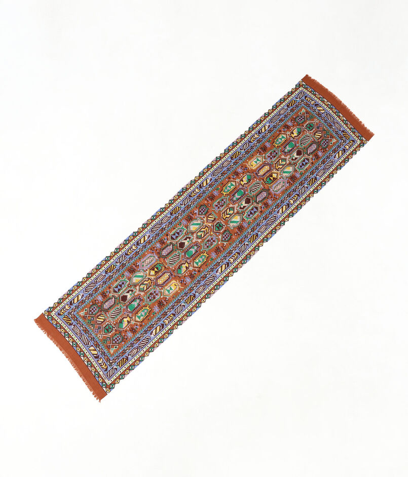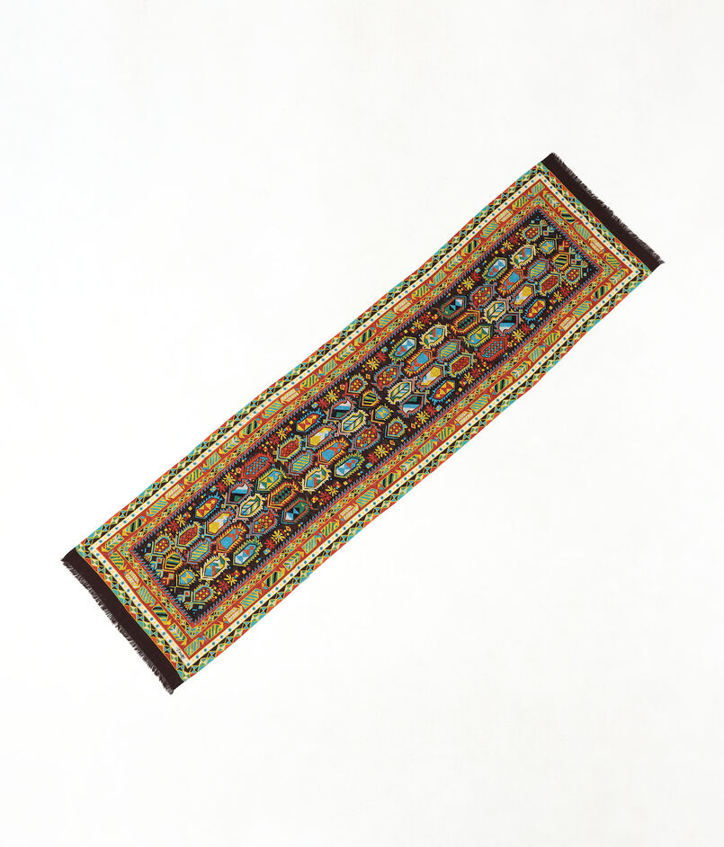 デザインアーカイブから厳選したこのキリムモチーフのスカーフ。