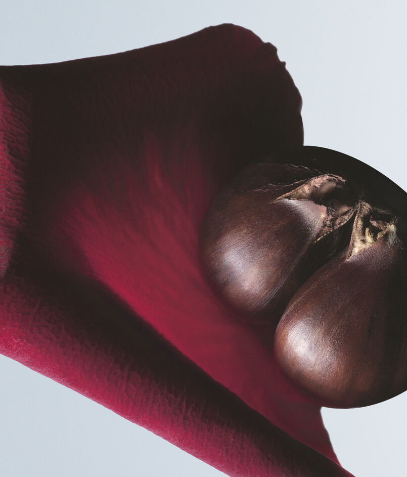 「ドリスのケ・マラケ店で見たシルクのドレスに恋をしました。そのテクスチャーはあまりにもしなやかで、まるで肌に溶け込むよう。それが、包み込むように香るシルキーな香水の着想源になりました。その香りは、マロンのまろやかさと官能的でなめらかなバニラが織りなす、やさしくて甘く濃厚なブレンドです。」