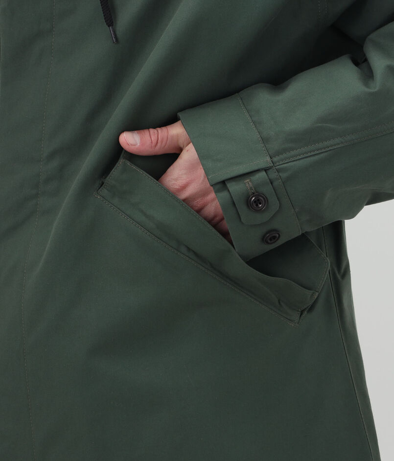 〈HALLEY STEVENSONS〉社の ドライワックスコットン素材を使用したモッズパーカ。