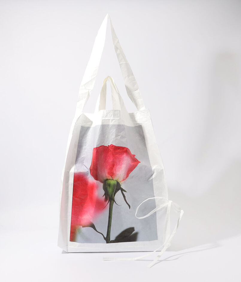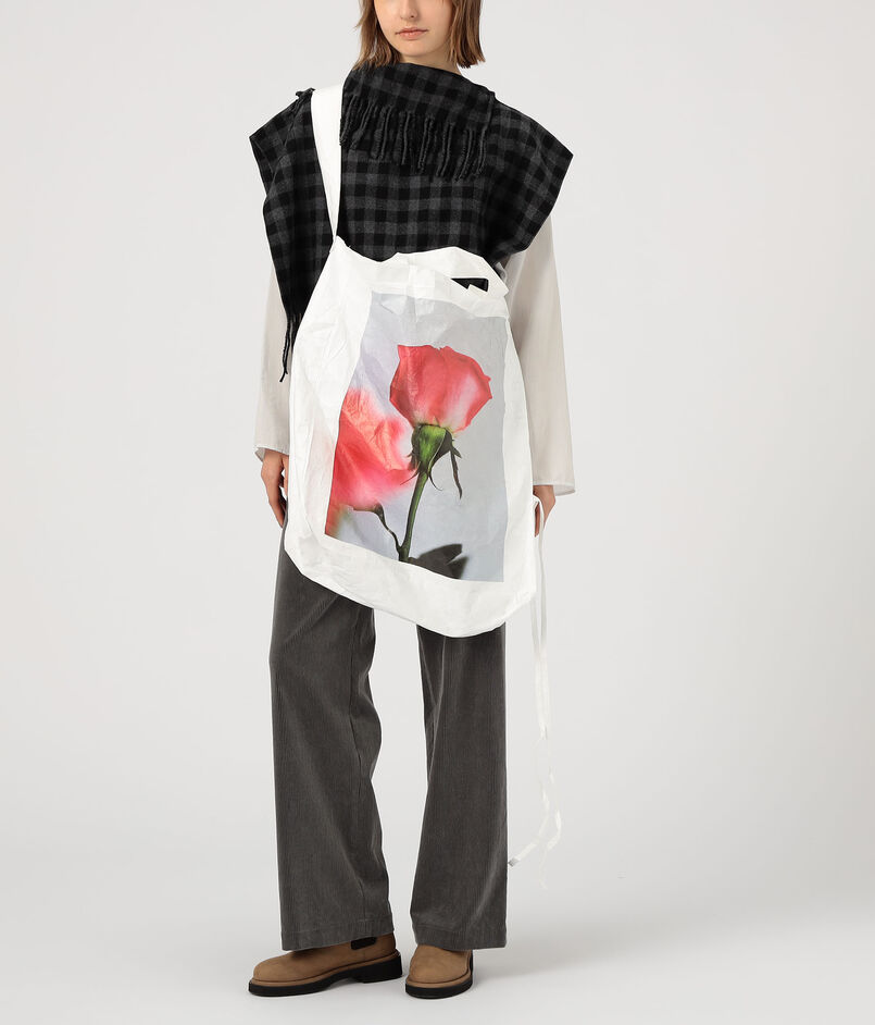 フラワーアーティスト・篠崎恵美氏が〈GALERIE VIE〉のためにアレンジした花をフルカラーでプリントした、持つ人のスタイルを引き立てるアートピースのようなスペシャルなアイテムです。