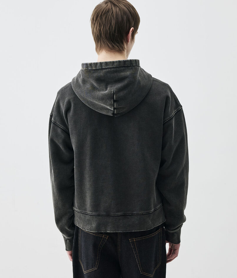 製品硫化染めとケミカルウォッシュ、グラインダー加工を施したブラックカラーとスプレー加工とウォッシュ、グラインダー加工を施したグレーの2色展開。