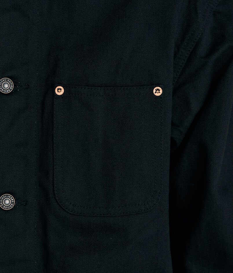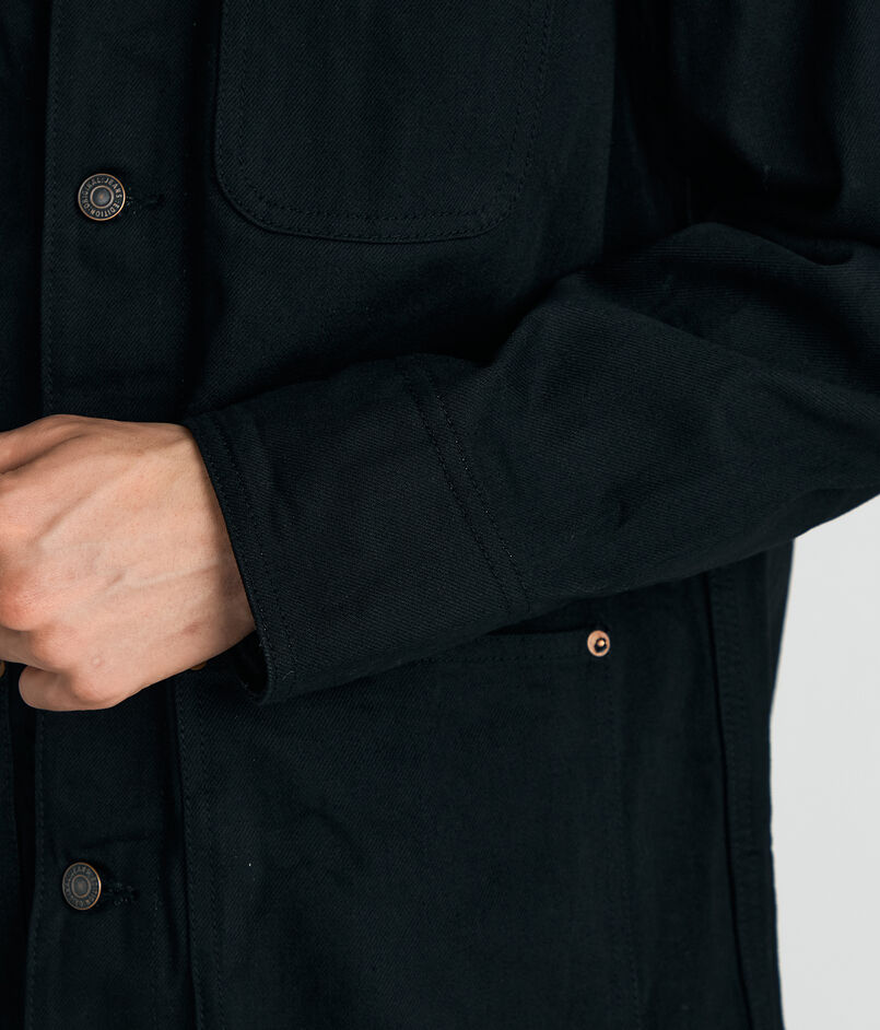 ナチュラルなムラ感のある13オンスのブラックデニム素材を使用したカバーオール。