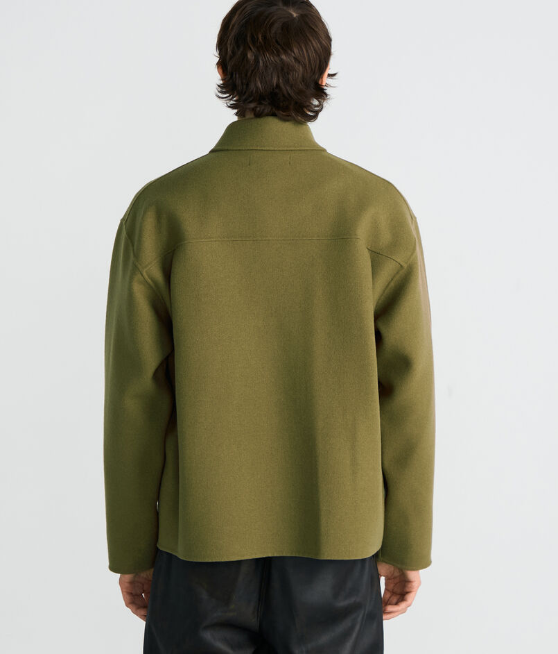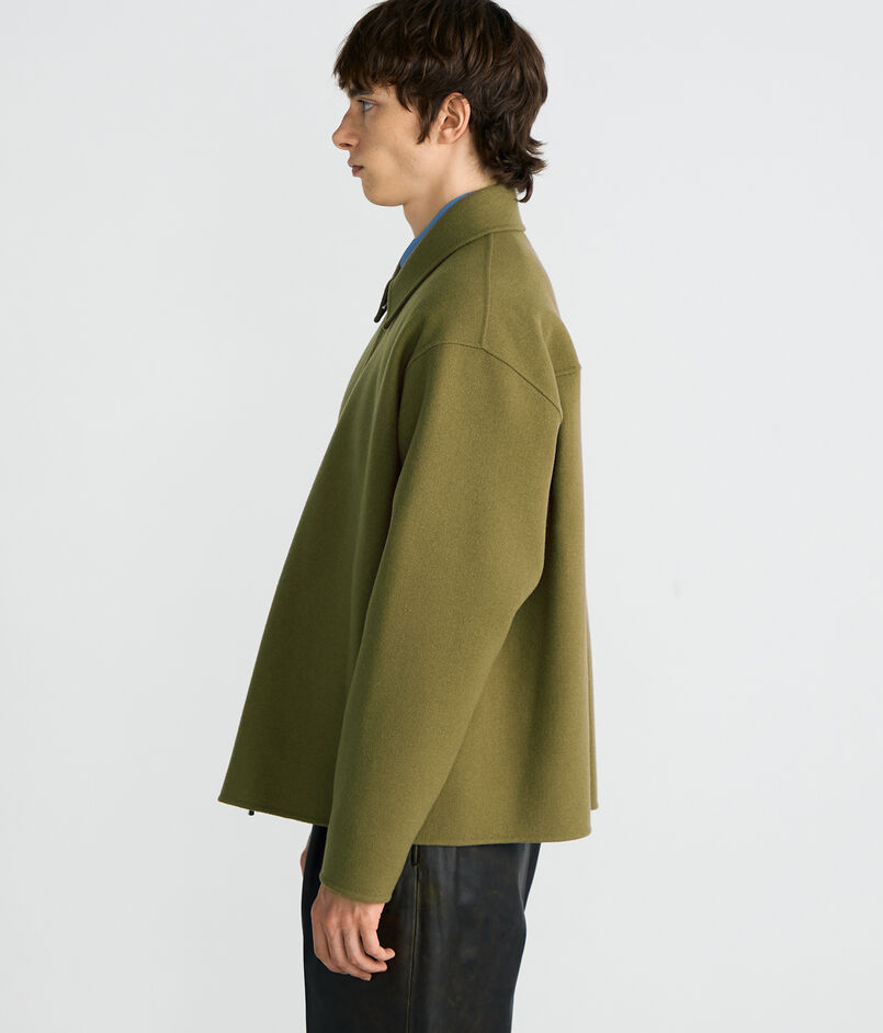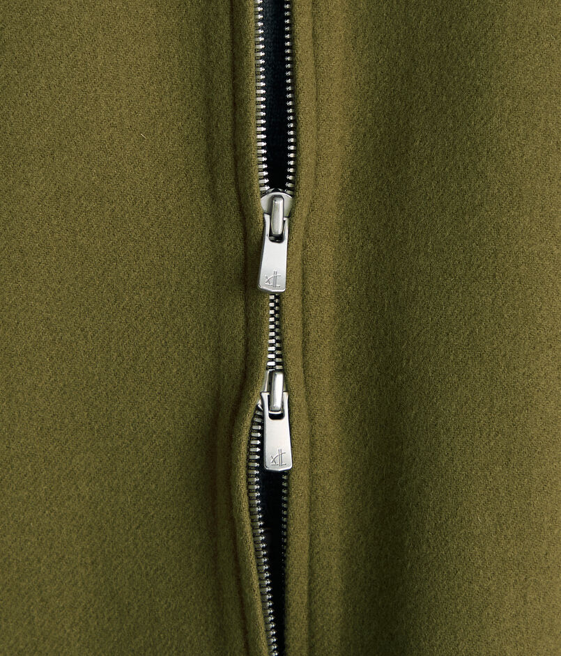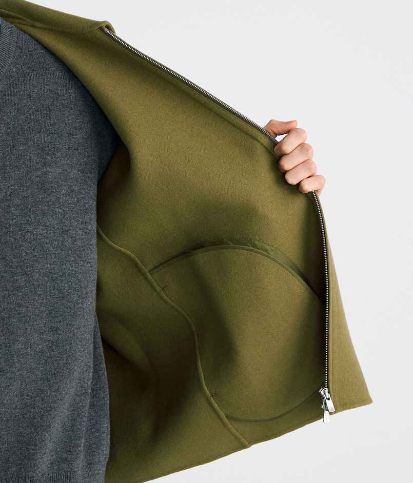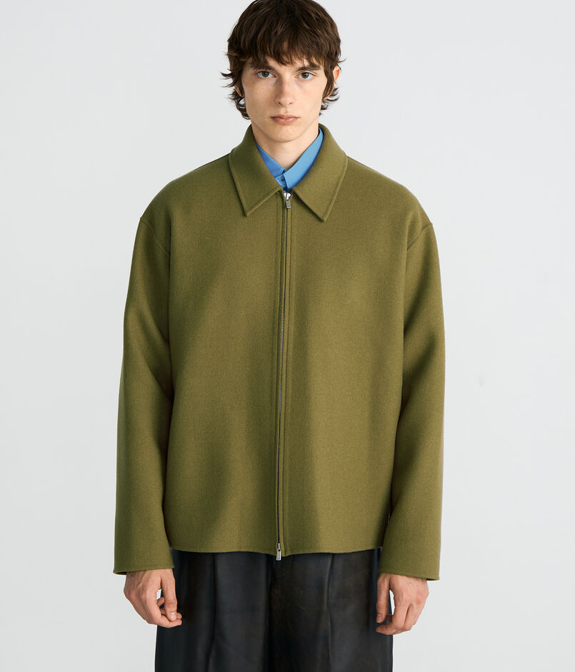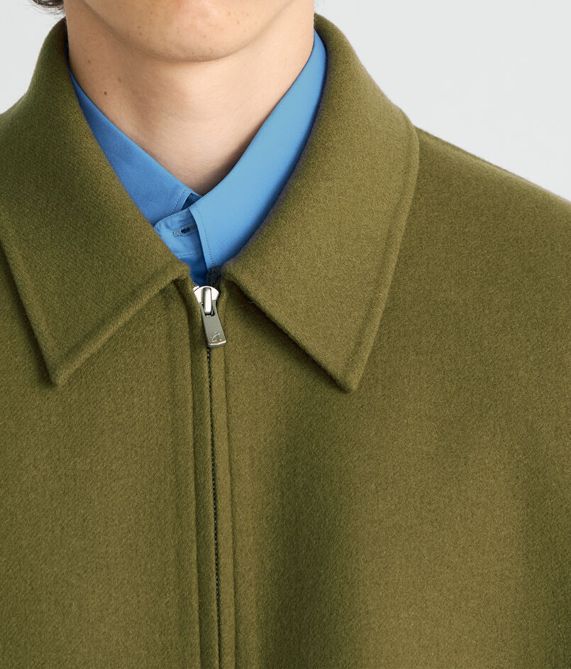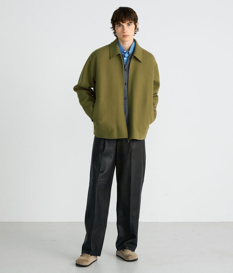 世界でも有数の高級毛織物産地尾州で海外メゾン向けの生地を数多く手掛ける生地メーカーのダブルフェイスメルトン素材を使用したブルゾン。