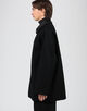 温かみのあるタッチの素材感と上品な光沢感が特徴の生地を使用したコート。