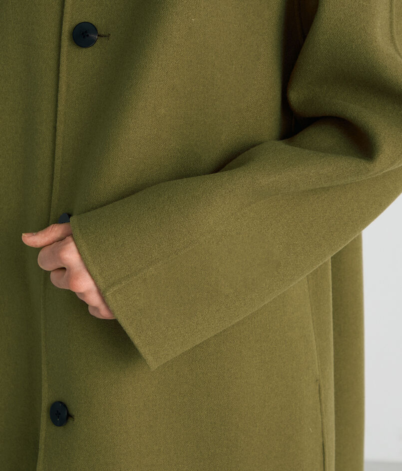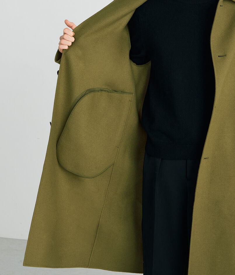 世界でも有数の高級毛織物産地尾州で海外メゾン向けの生地を数多く手掛ける生地メーカーのダブルフェイスメルトン素材を使用したコート。