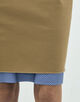 タテ糸にはコットンを、ヨコ糸にはポリエステル混の糸を使用し織り上げた、インド一貫生産のツイル素材を使用したスカート。