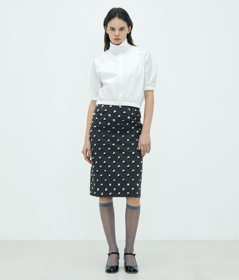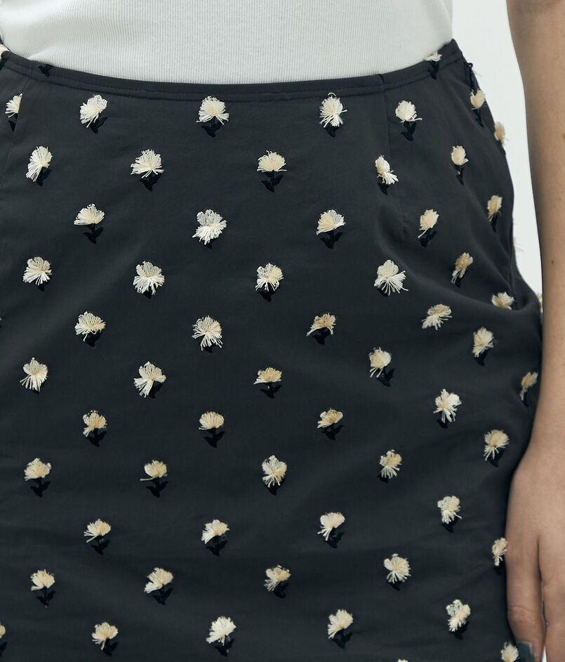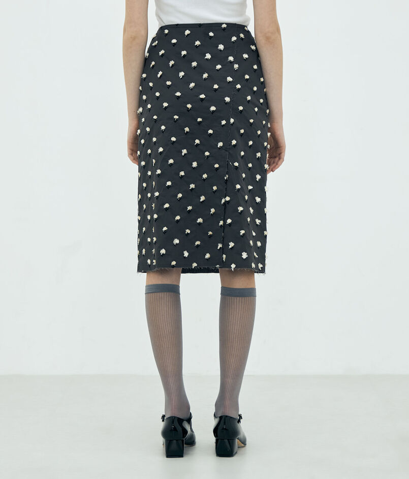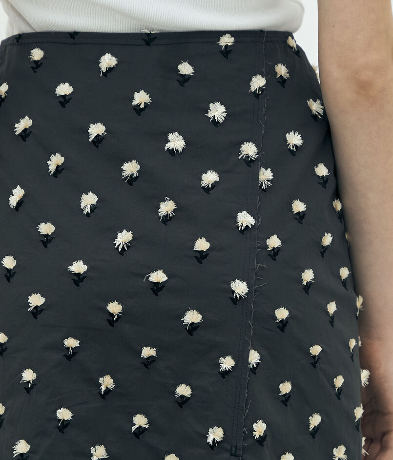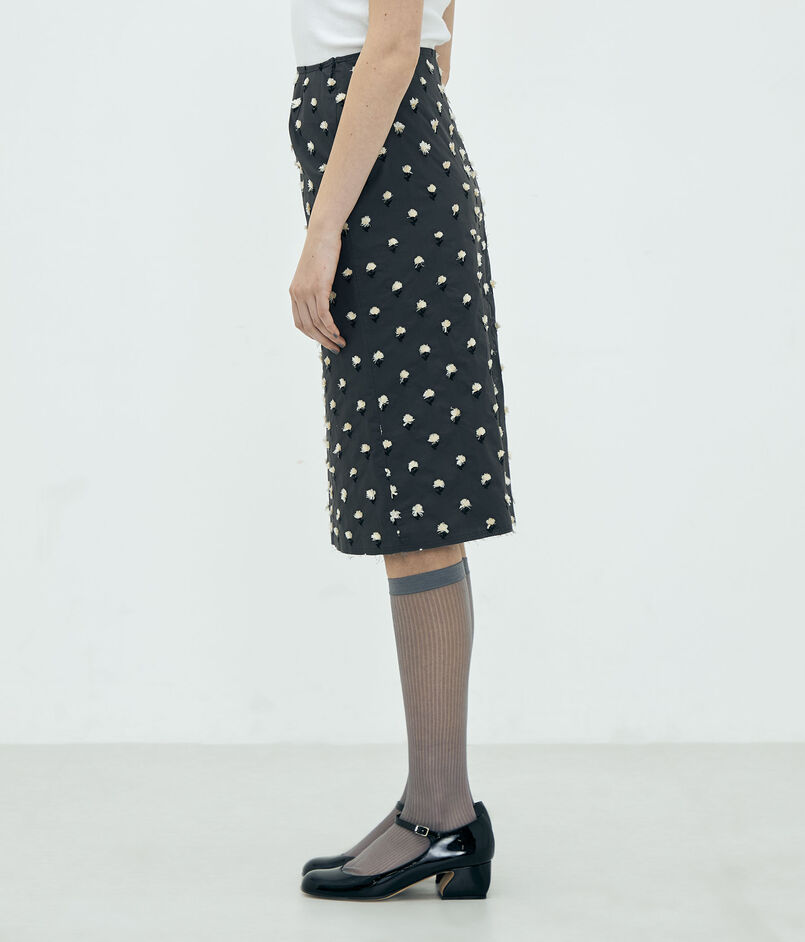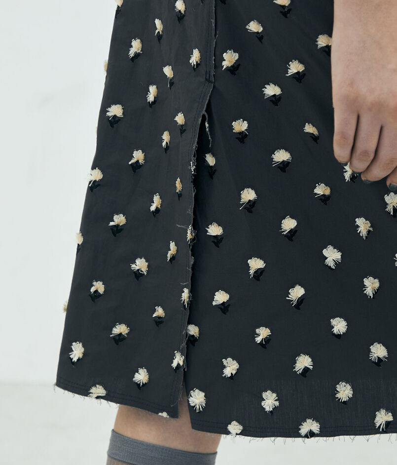 インドの高級刺繍メーカーの素材に、自然な草花モチーフの刺繍を施したスカート。