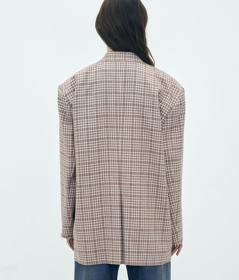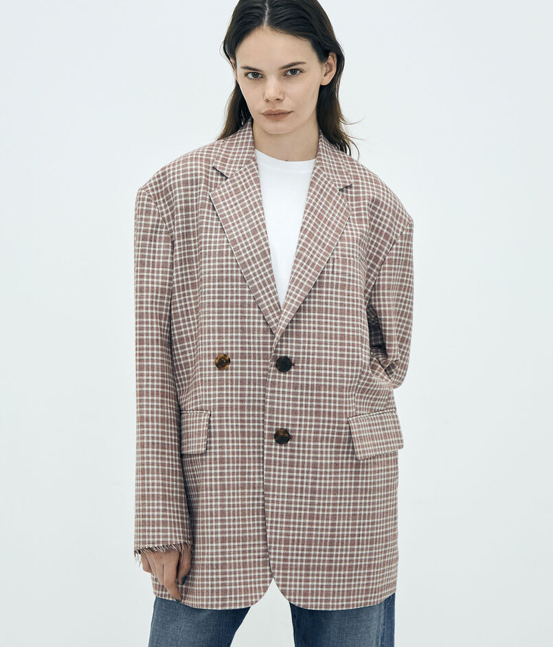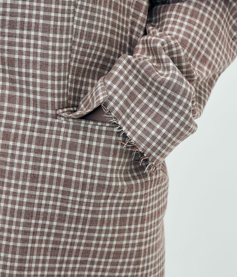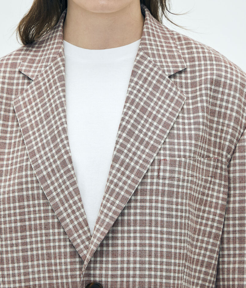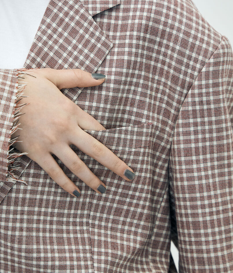 日本が誇る毛織物産地の尾州で生産された、〈Edition〉オリジナルのマルチチェック柄が目を惹くジャケット。