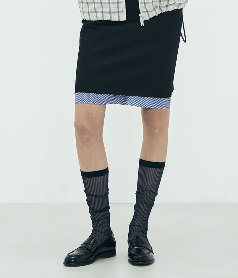 伸ばすと膝下までの長めの丈で作っているので、少しギャザーを持たせてふくらはぎでたるませて履くのがおすすめ。