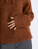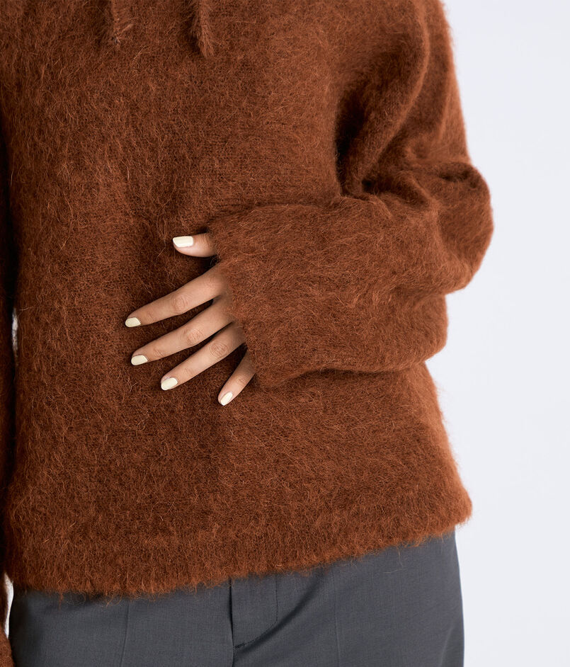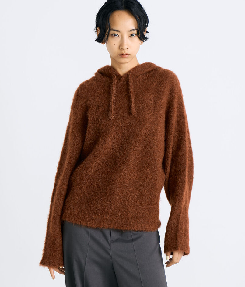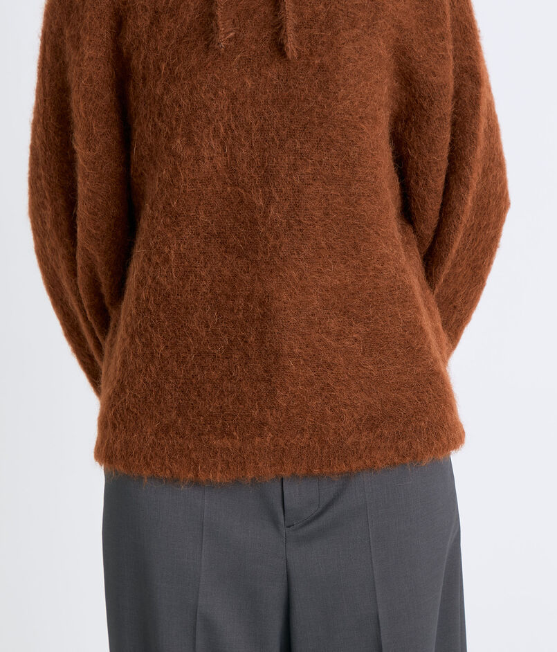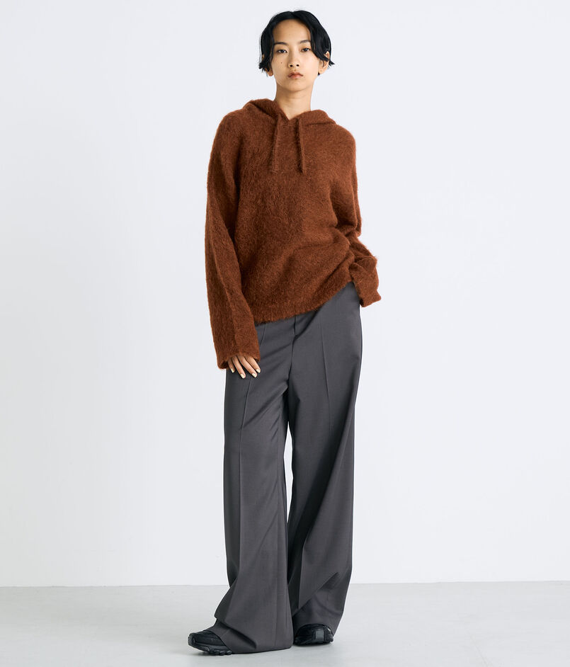 アルパカモヘア混の糸を使用し、シャギー加工をして毛足をだし、シーズンムードを感じられるデザインに仕上げました。