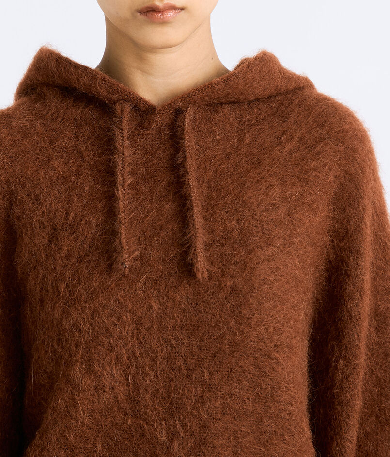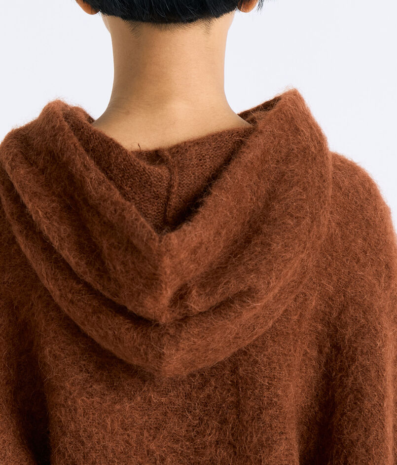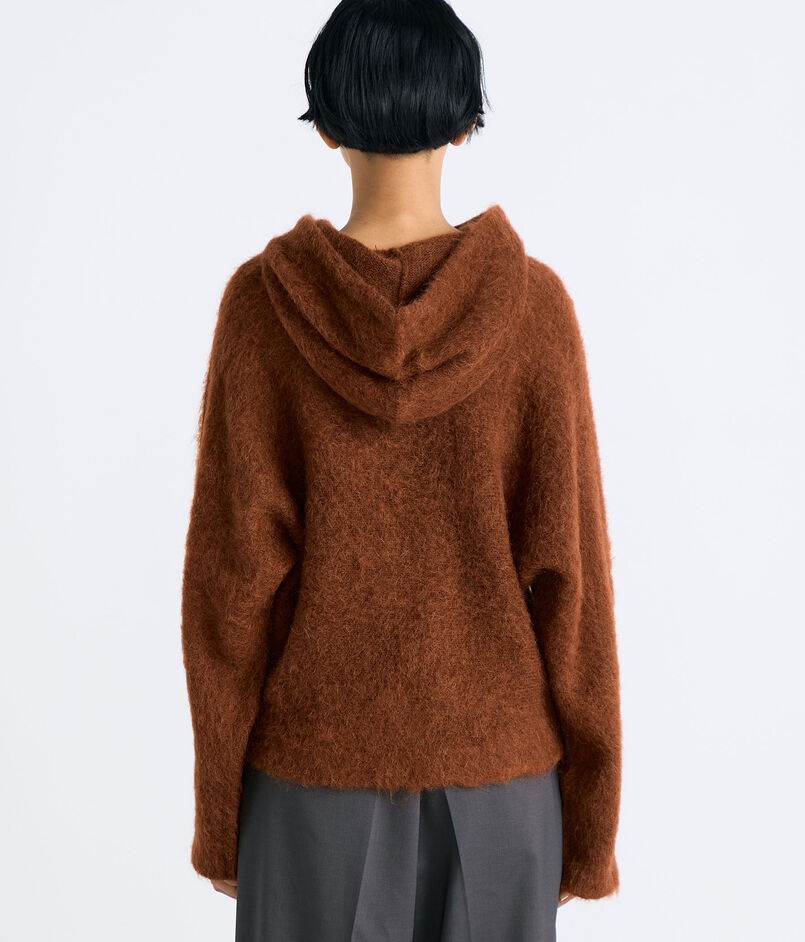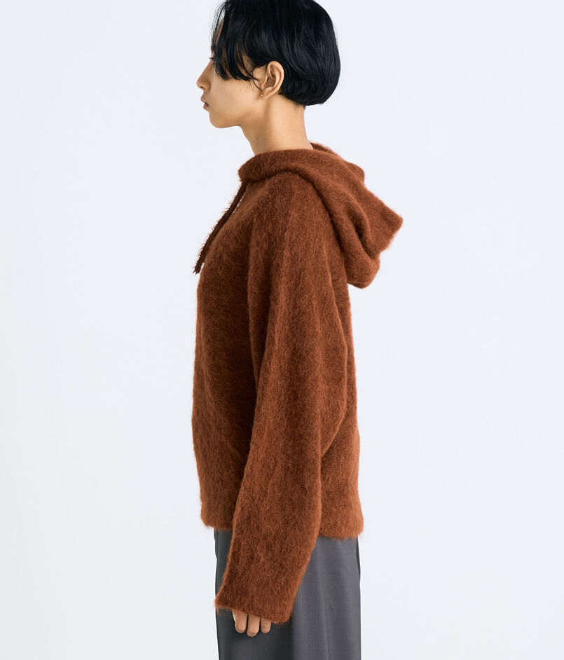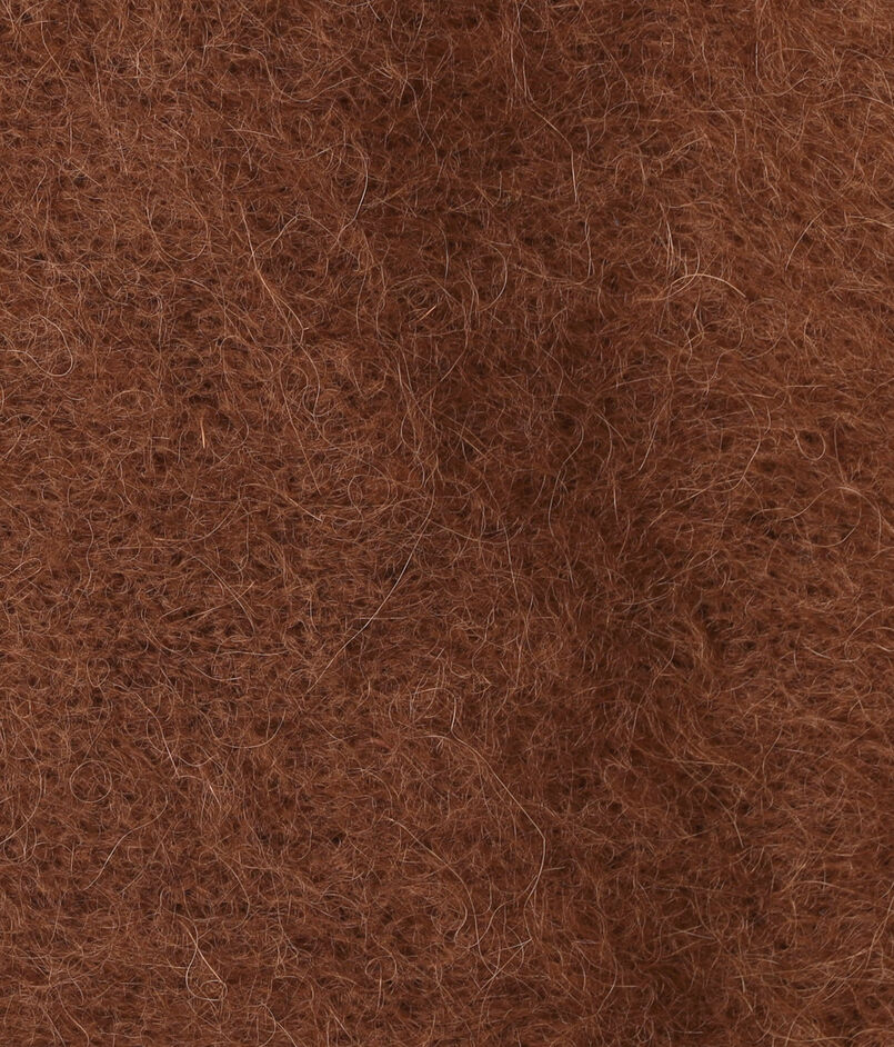 アルパカモヘア混の糸を使用し、シャギー加工をして毛足をだし、シーズンムードを感じられるデザインに仕上げました。