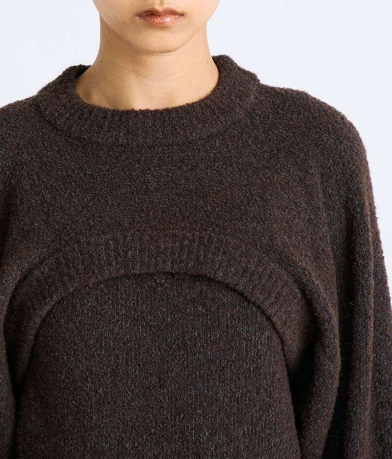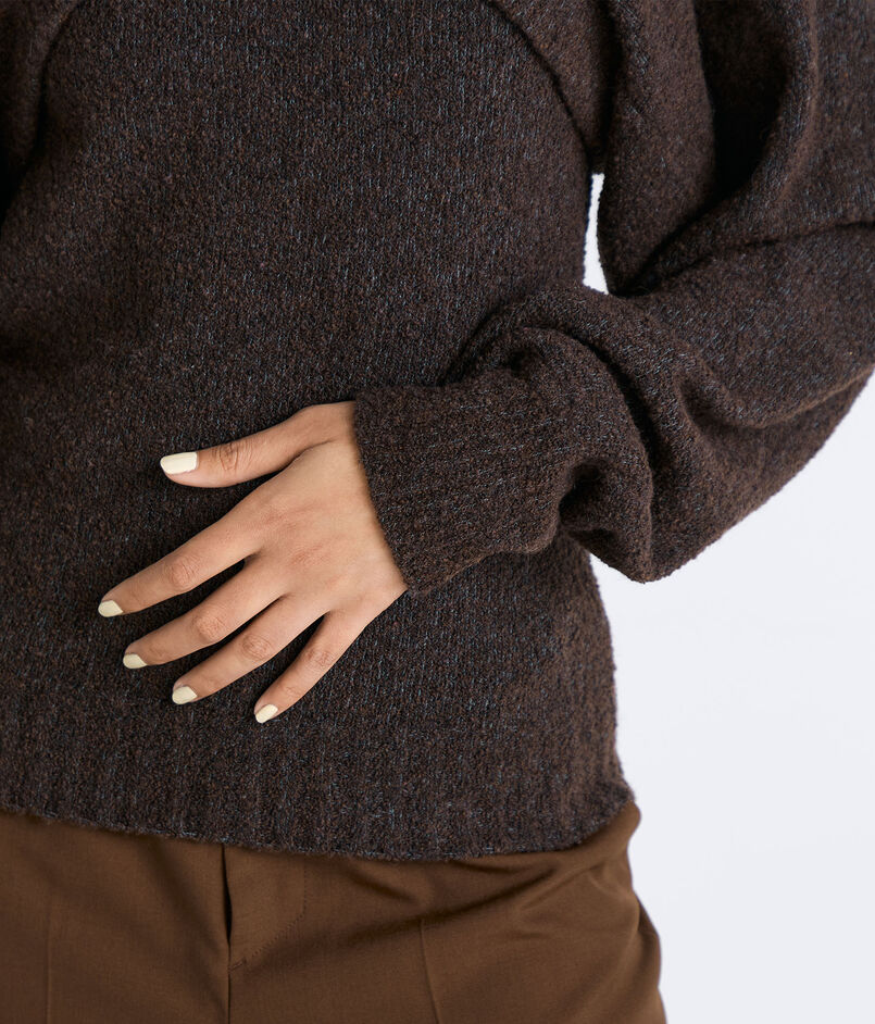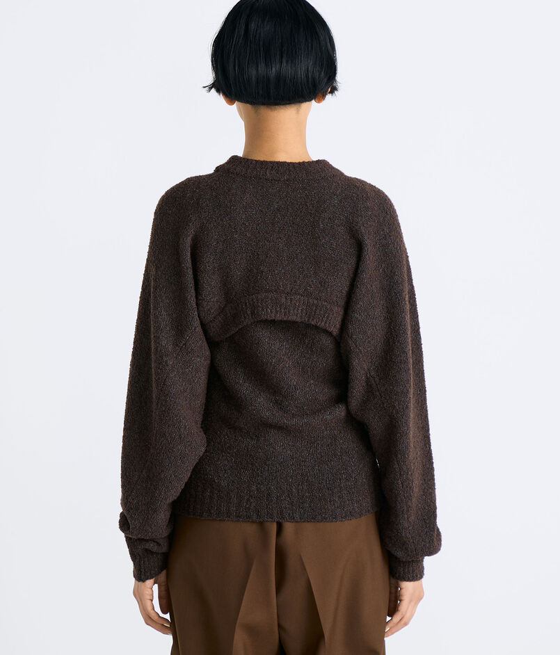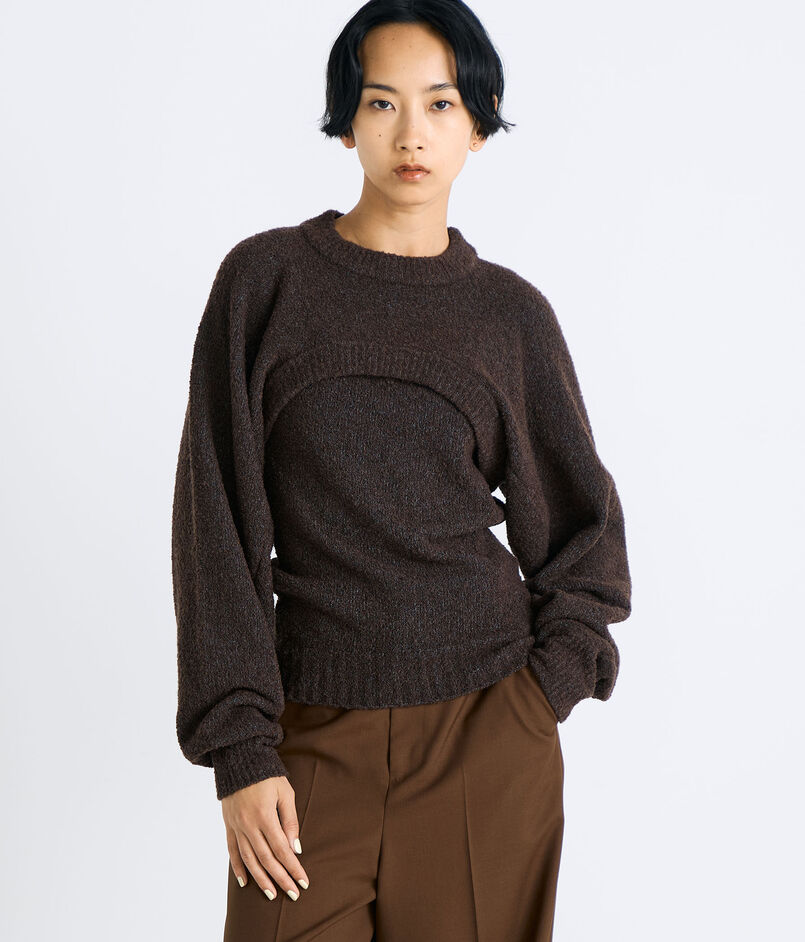 ネップのあるブークレー糸を使用したショートレングスのニット。
