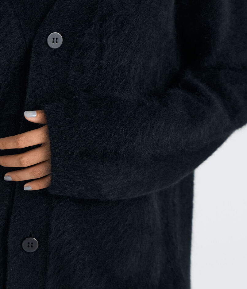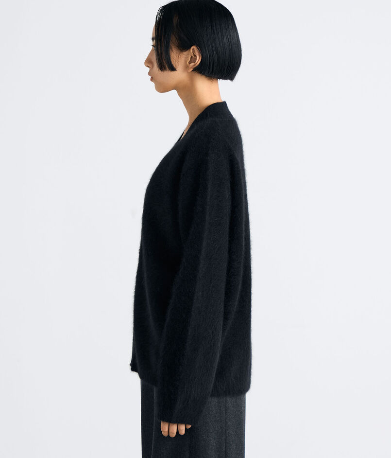 やわらかな肌触りと高い保温性を兼ね備え、ゆったりシルエットが羽織りとしても活躍する、贅沢なカーディガンです。