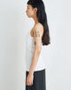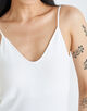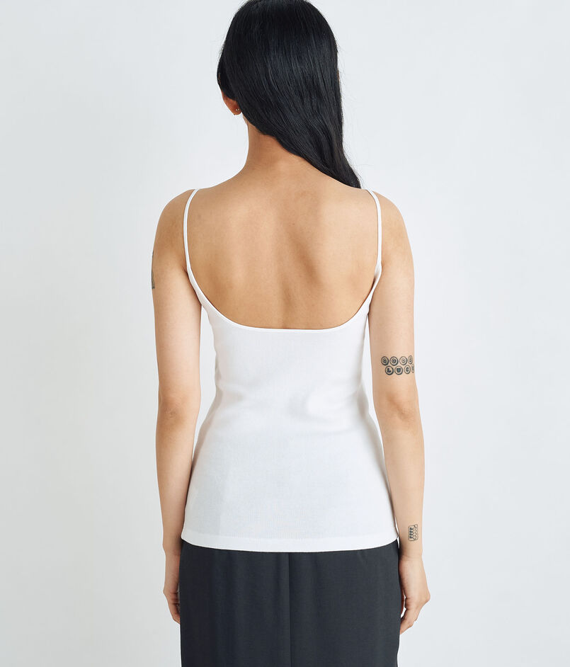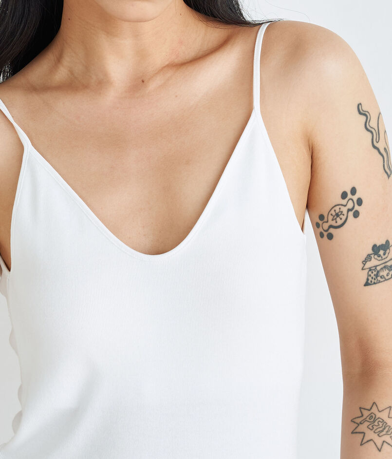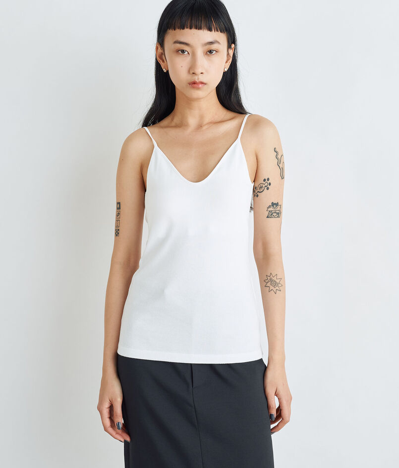 胸元が女性らしくヘルシーにきまるVカットと背中のあきにこだわったキャミソールです。