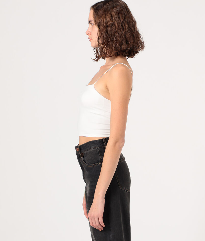 カップは取り外し可能で、羽織りの中着としてやシアー素材のアイテムとの合わせなど、レイヤードした際の見え方も美しい汎用性の高い一着です。