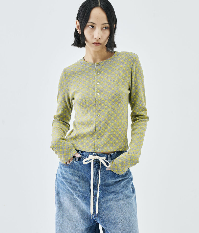 Edition定番のコットンフライスを使用したカーディガンにプリントが登場。