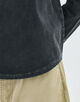 製品硫化染めとケミカルウォッシュ加工を施し、ビンテージライクな表情を生み出しています。