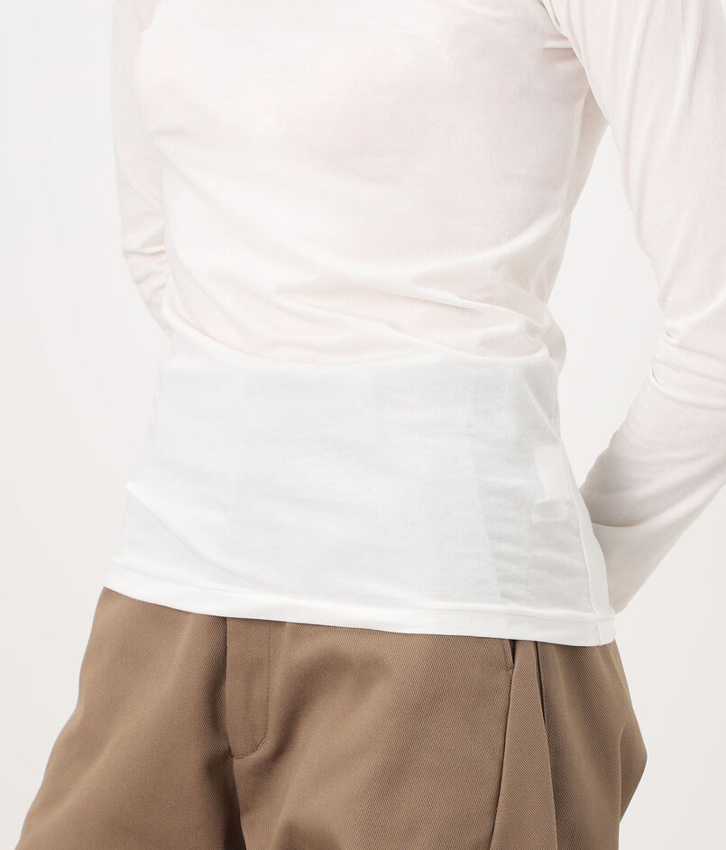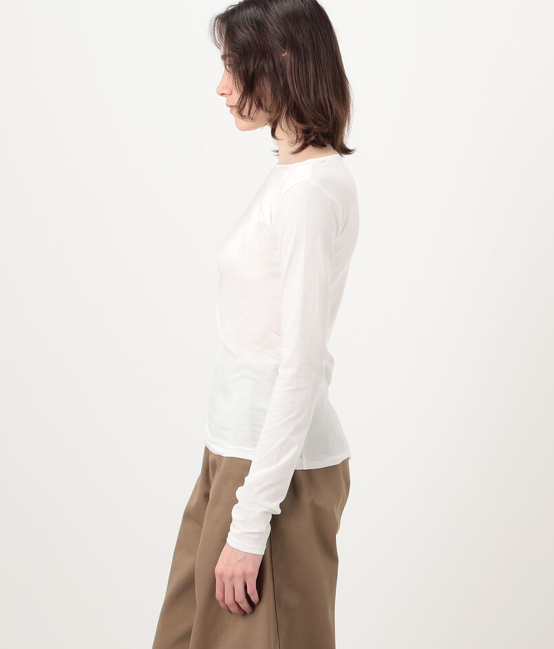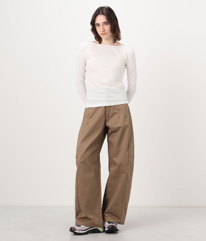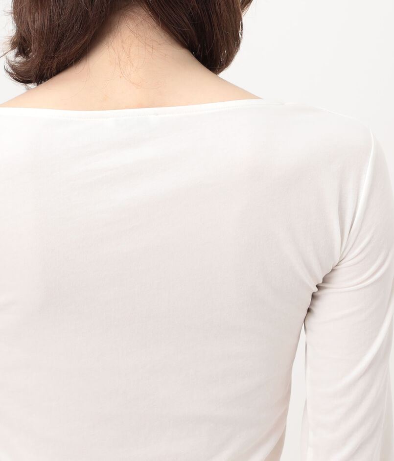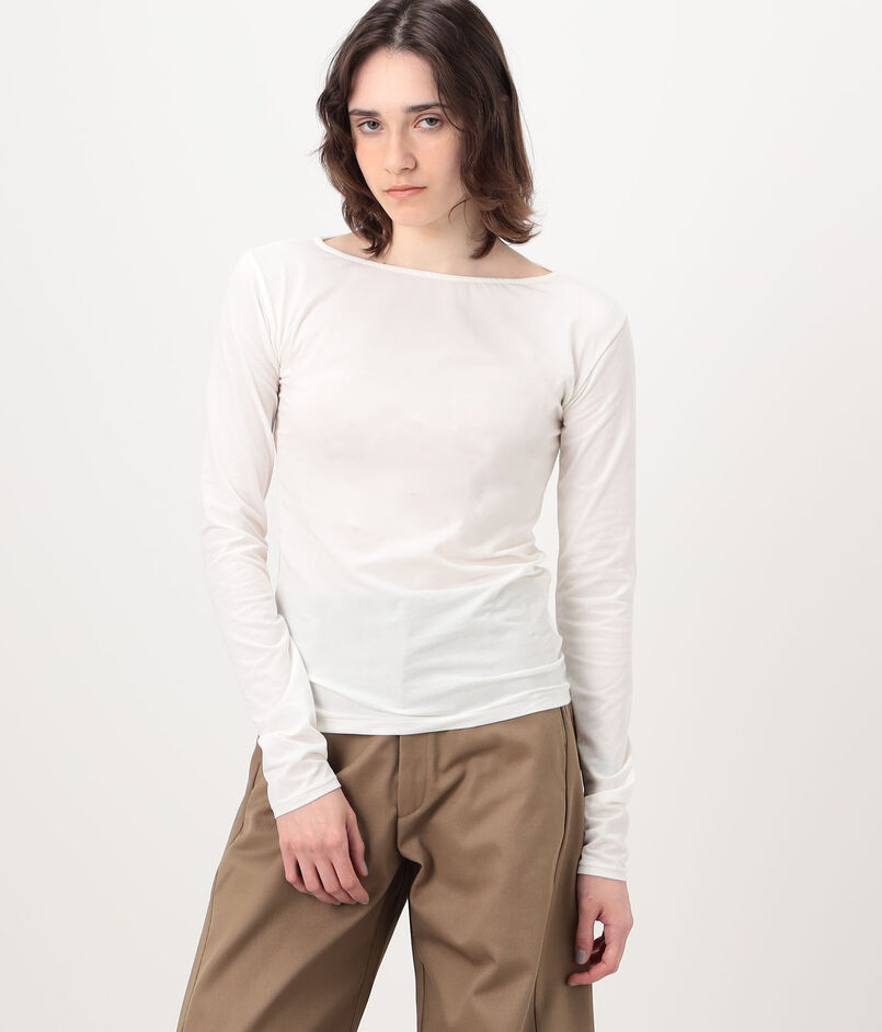 デコルテを美しく見せる浅めのボートネックと、タックイン・アウトどちらもスマートに決まる絶妙な丈はスタイリングを問わず幅広くコーディネートを楽しめます。