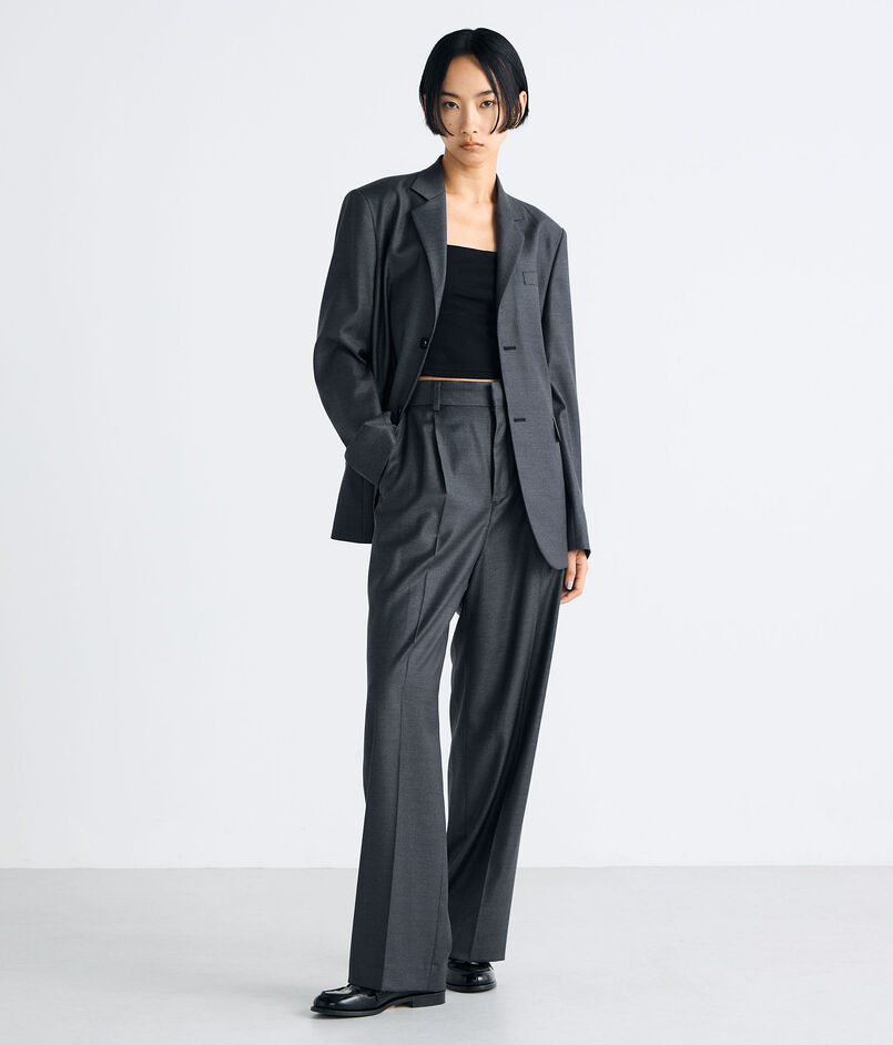 ヒップはゆとりがあり裾に向かってテーパードしたデザインですっきりと着こなしていただけます。