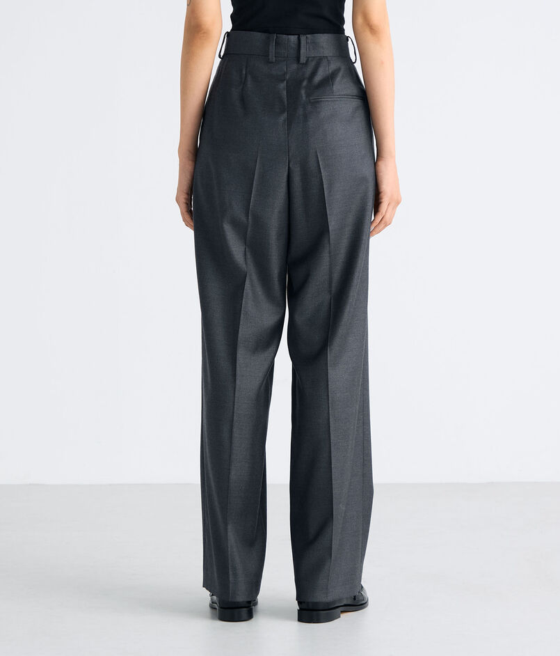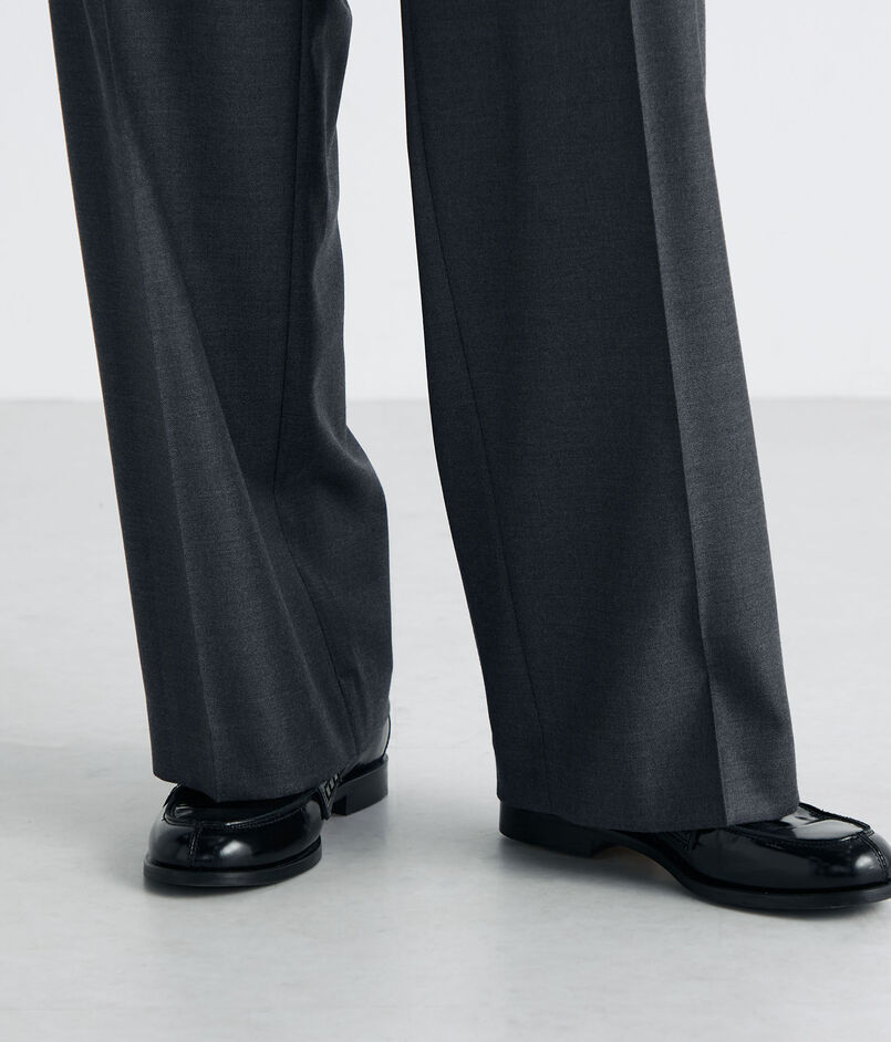 イタリア高級生地メーカーのSuper130'Sウール原料を使用した、耐久性があり、ビジネスシーンにも適した素材感が魅力のツイル素材のスラックス。