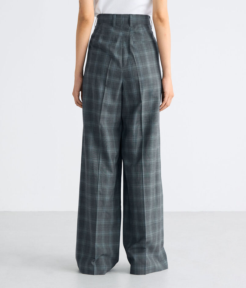 繊細なドレープを描く、Super140’sのスーパーファインウールを使用したトロピカル素材に、オリジナルのチェック柄をのせた一本。