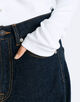 ワンウォッシュの美しいインディゴブルーカラーがタイムレスなスタイルを完成させます。