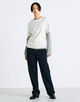 高めに設定したウエスト位置から曲線を描くことによって、太ももや腰回りはカバーしつつ脚長効果も期待できるシルエットです。