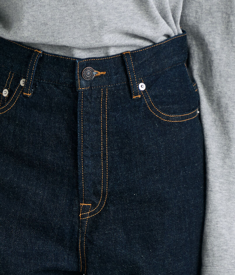 ワンウォッシュの美しいインディゴブルーカラーがタイムレスなスタイルを完成させます。