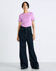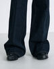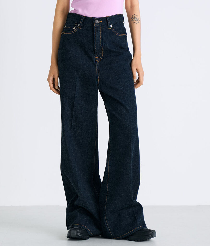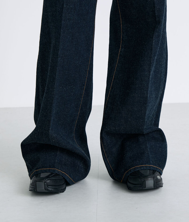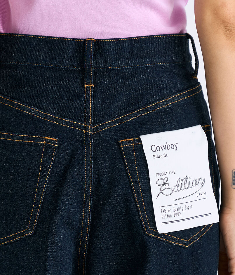 高めに設定したウエストラインからヒップにかけて美しいシルエットになるように設計したフレアデニム。