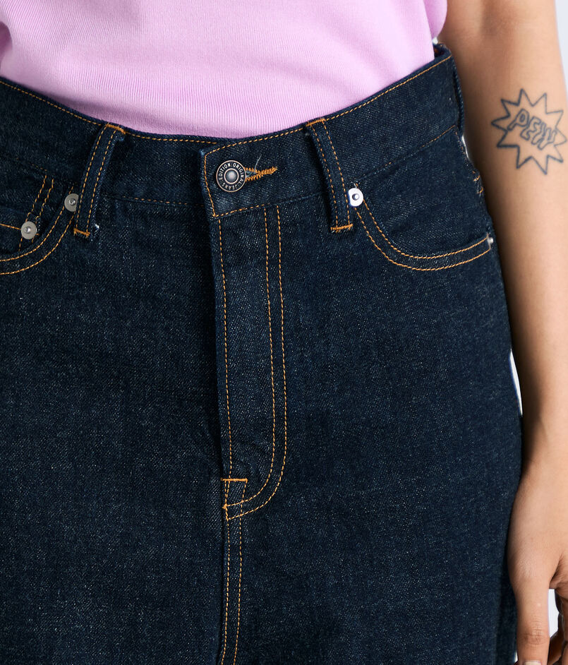 ワンウォッシュの美しいインディゴブルーカラーがタイムレスなスタイルを完成させます。