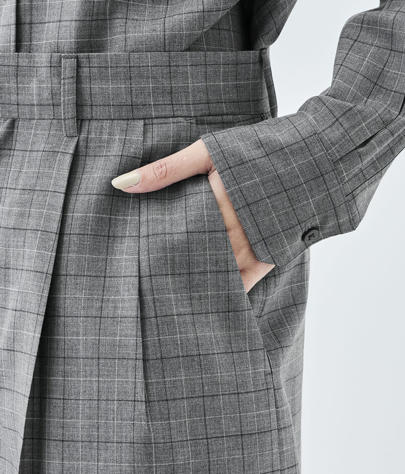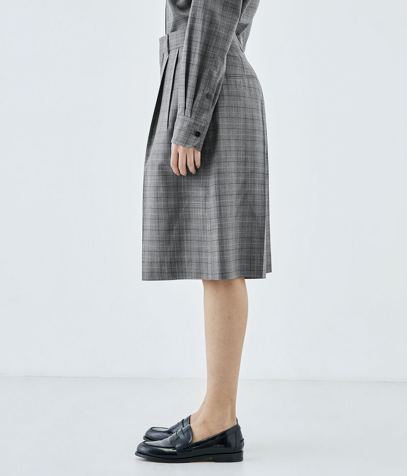 膝が隠れるレングスやセンタープレスを入れることでよりシックな印象でお召しいただけます。