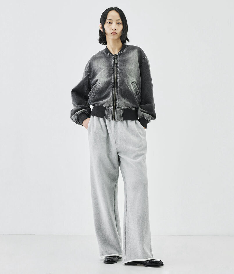 製品硫化染めとケミカルウォッシュ、グラインダー加工を施したブラックカラーとスプレー加工とウォッシュ、グラインダー加工を施したグレーの2色展開です。