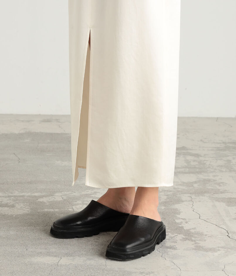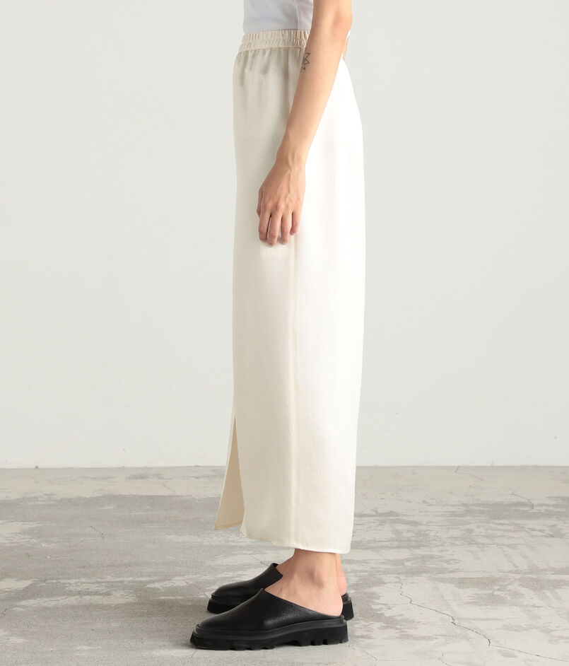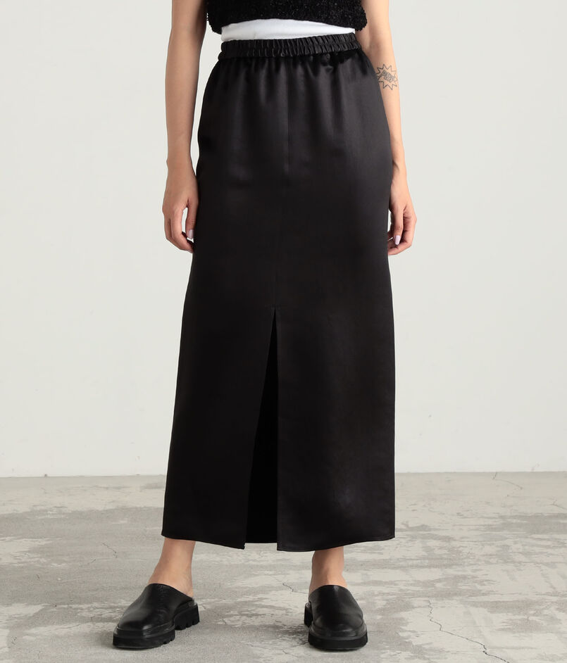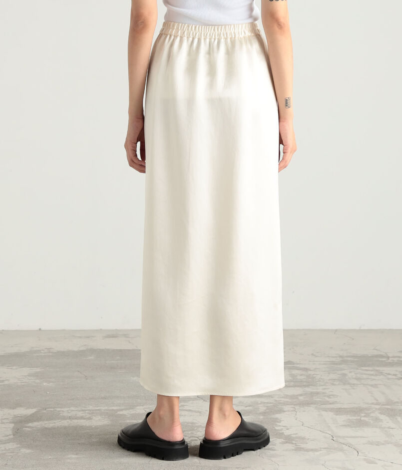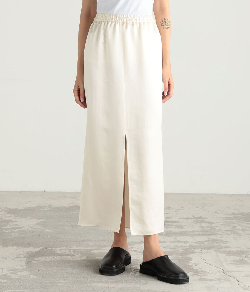 サテン素材にチンツ加工をかけた光沢が美しいイージースカートです。