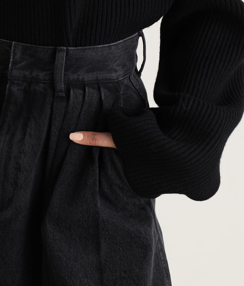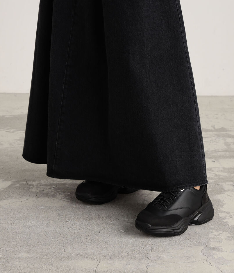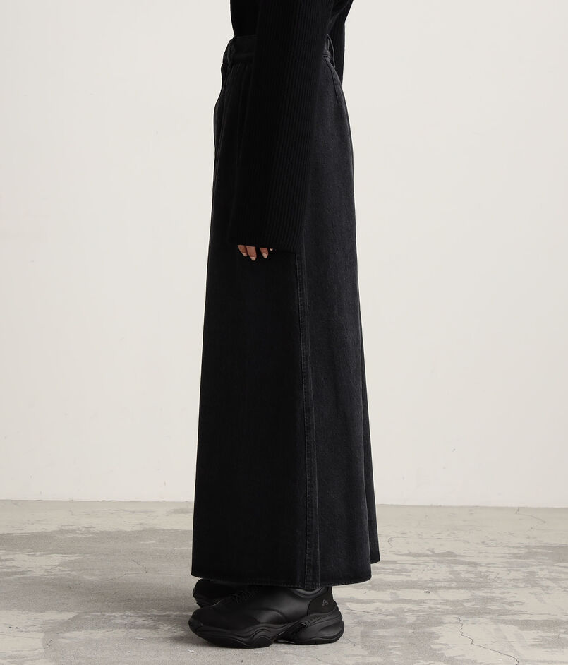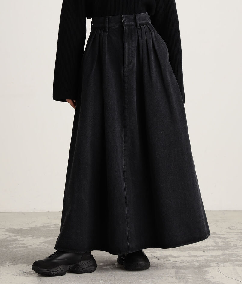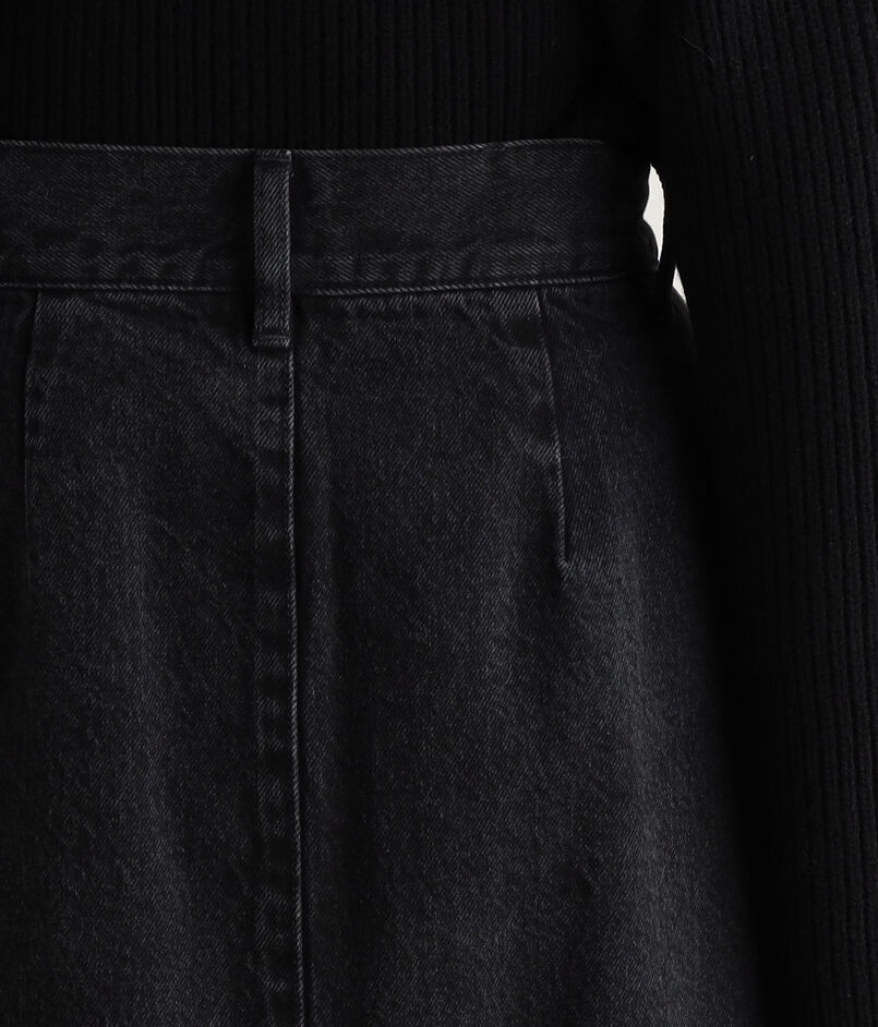 ブラックデニムのフレフアスカート。
