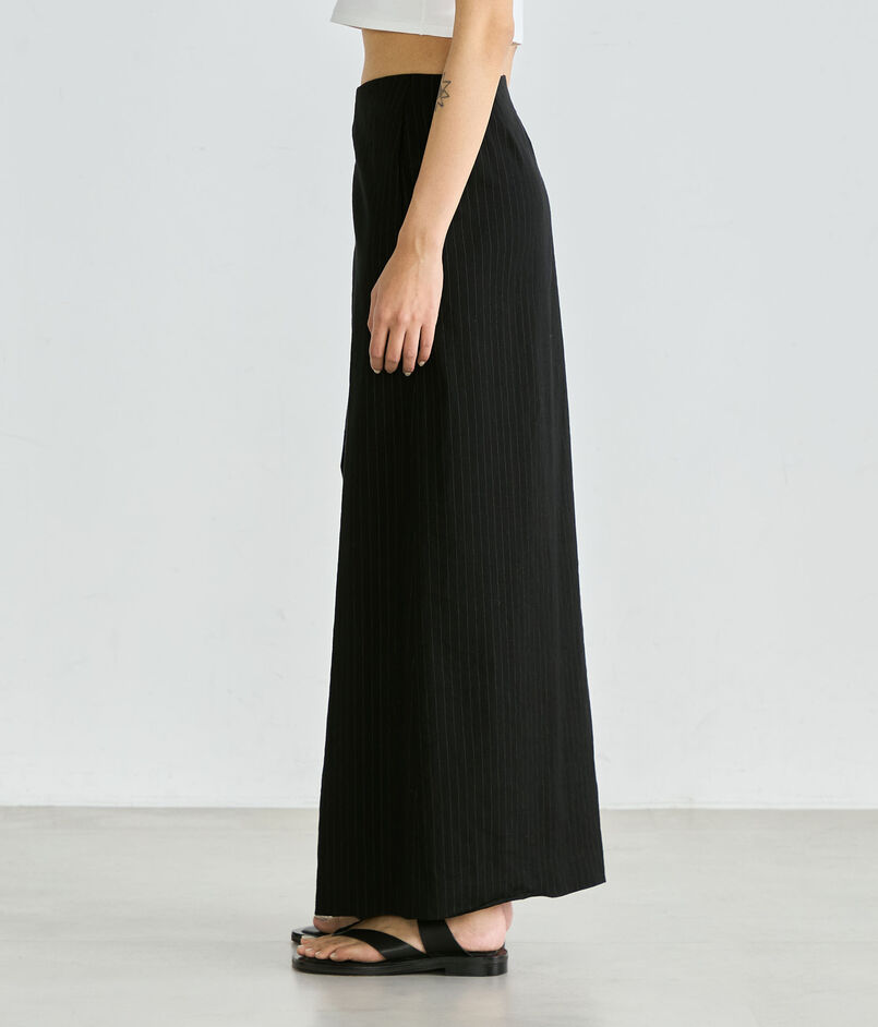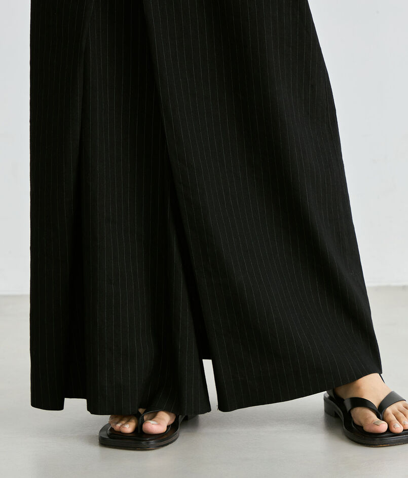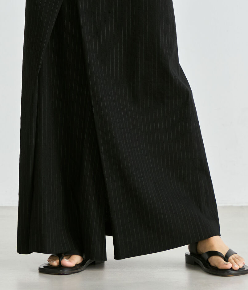 ストレッチのきいたリネン素材で仕立てたラップスカートです。