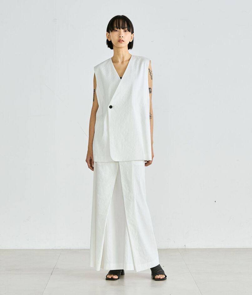 同素材のジャケットやジレとセットアップでの着用も可能です。