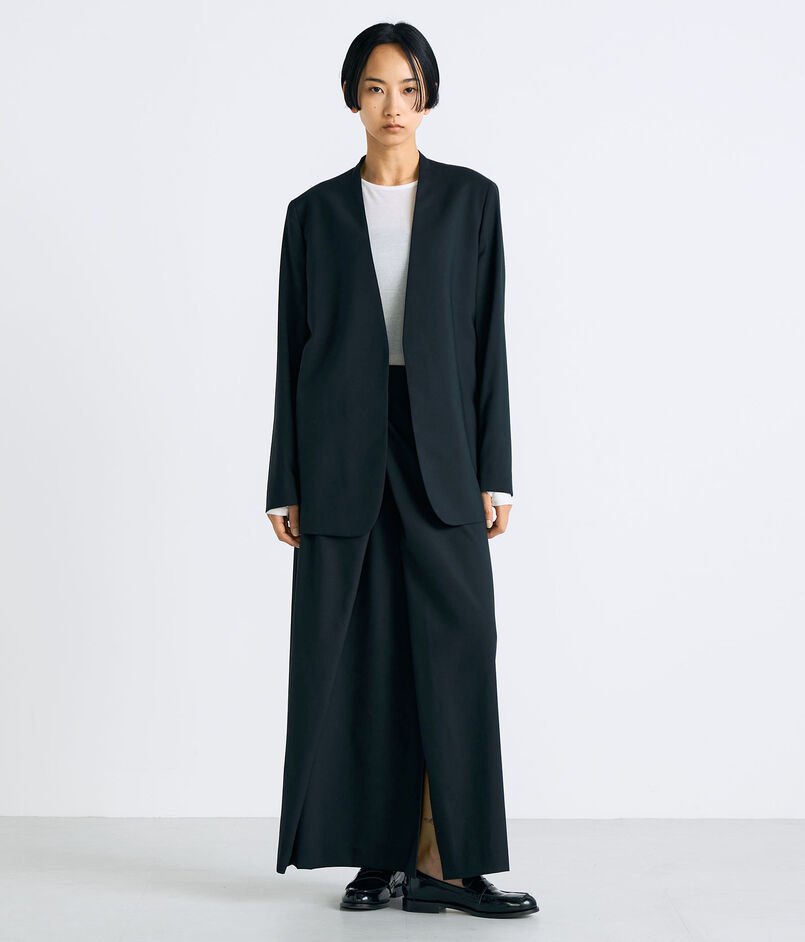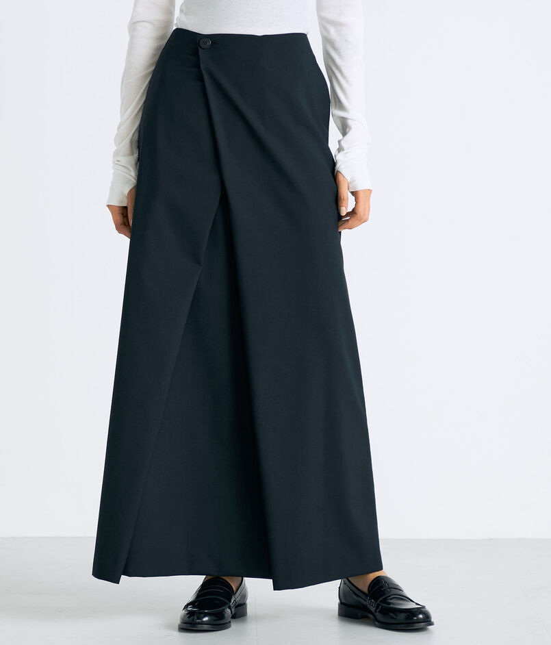 2025FWシーズンよりウール原料をSuper140’sに、またポリエステル原料もアップデートしたラップスカート。