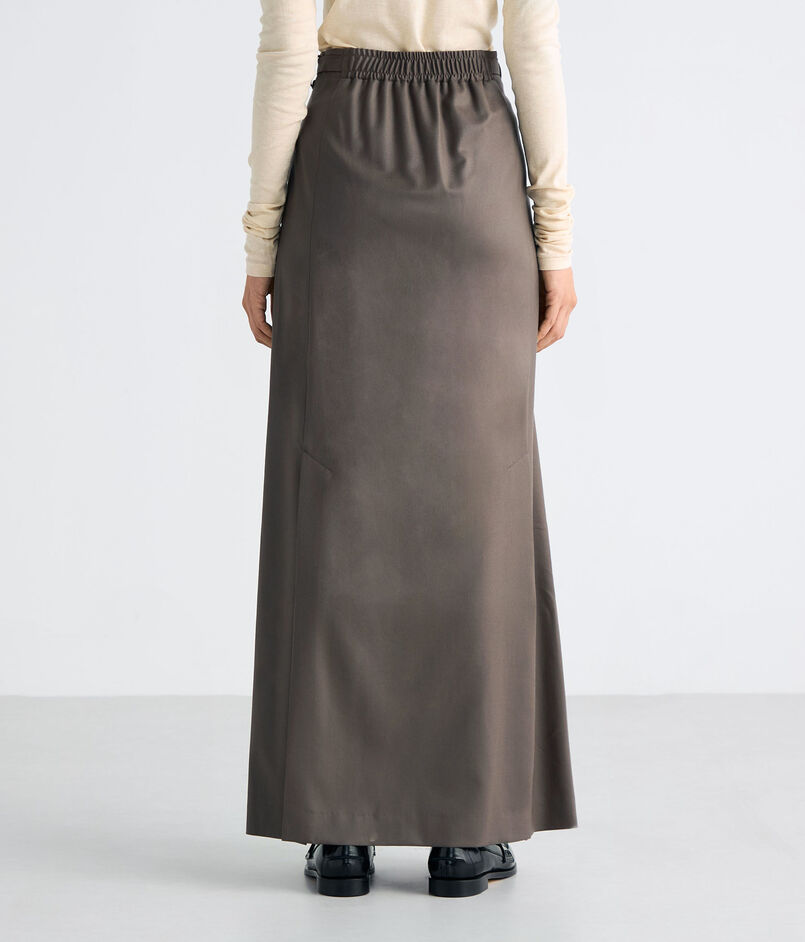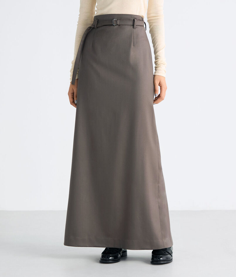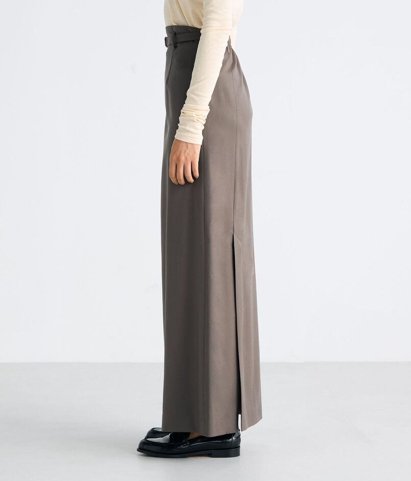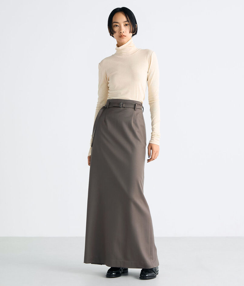 セミハイウエストな作りが、カジュアルからフォーマルまで幅広い着こなしを楽しんでいただける Iラインスカート。