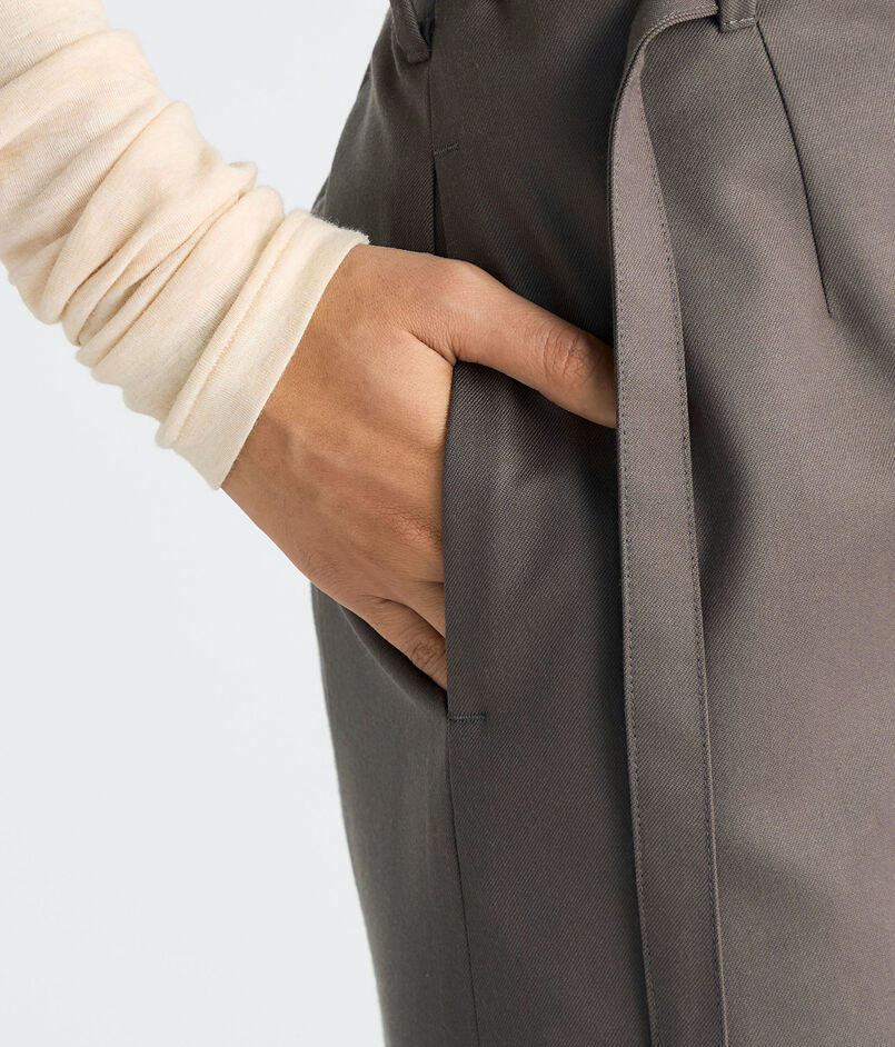 腰周りの収まりがよいディテールなのでタックインスタイルやクロップド丈のコンパクトなトップスとも好相性です。