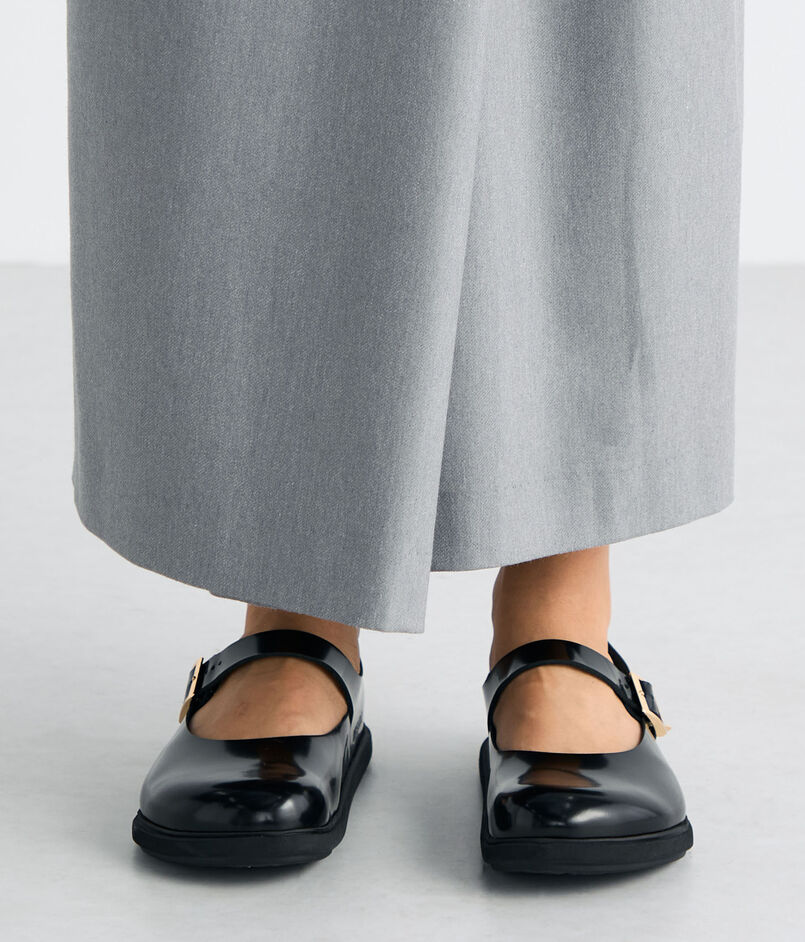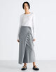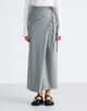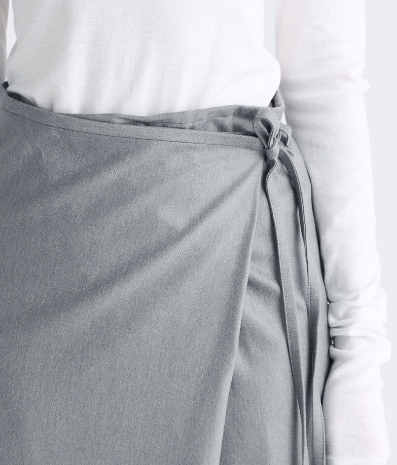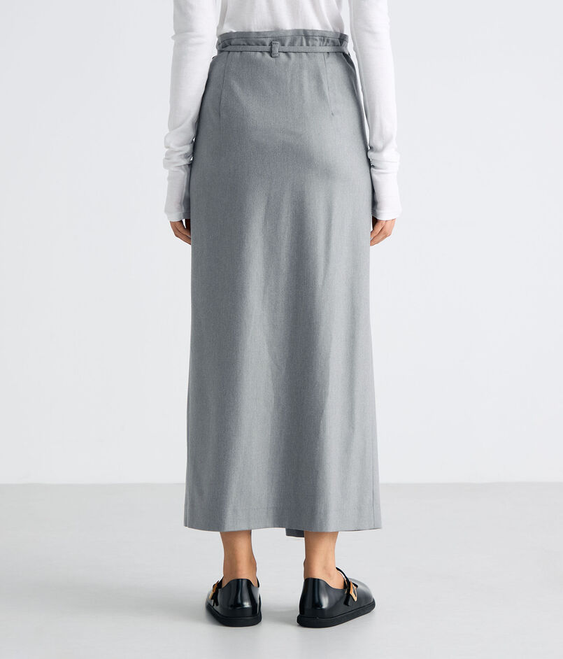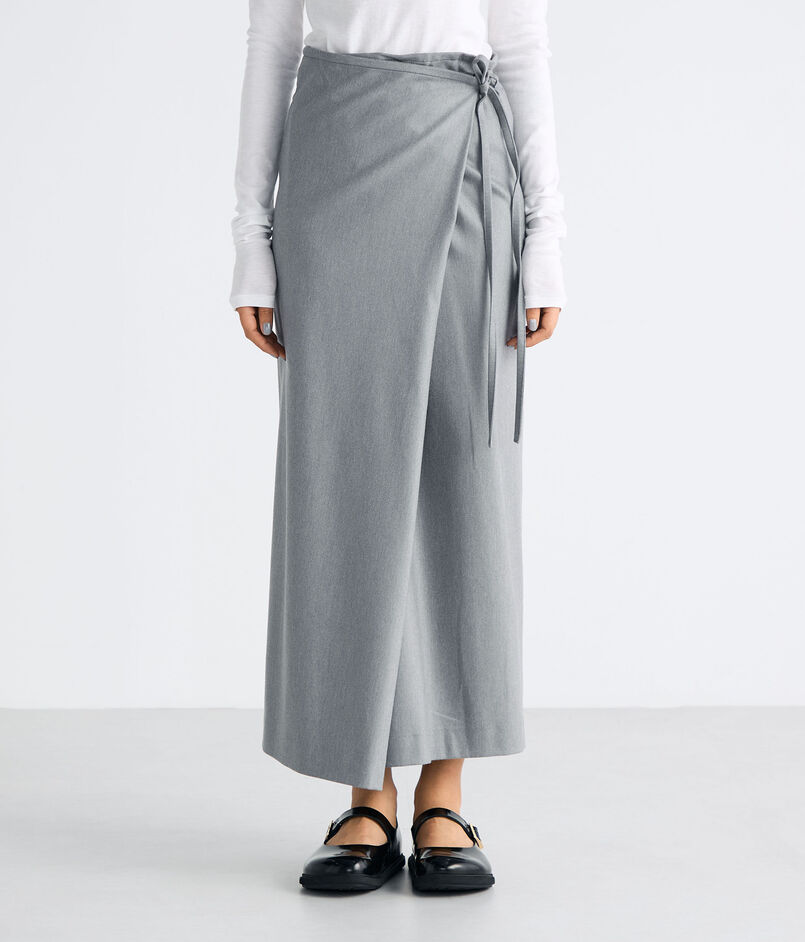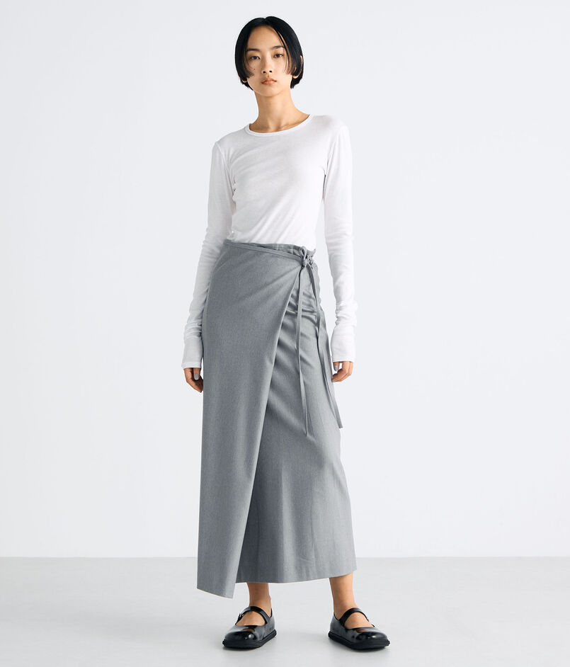 ニュアンスのあるフロントデザインが特徴のラップスカート。