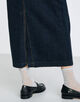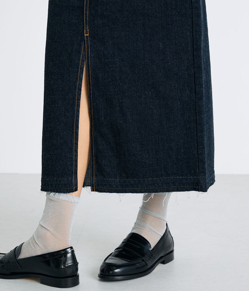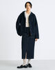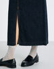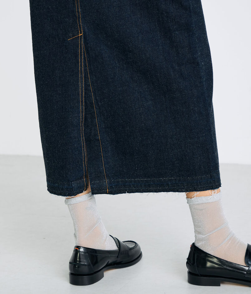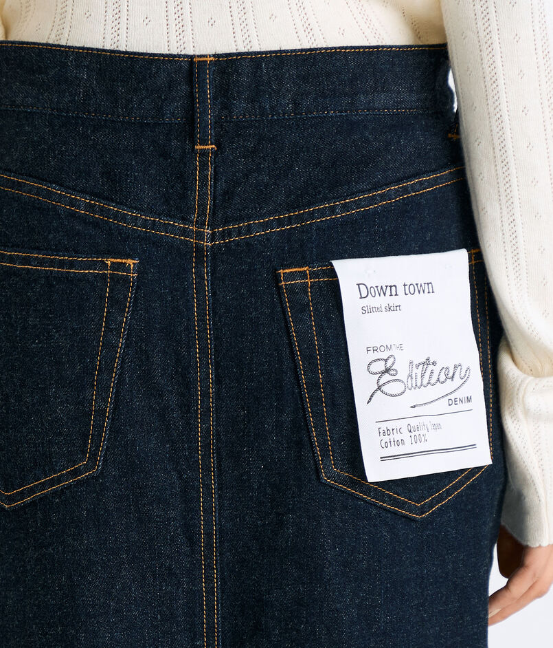 前後にスリットが入り、ヒップラインから足回りまで、着用した際きれいなシルエットに穿けるよう設計したスカート。