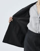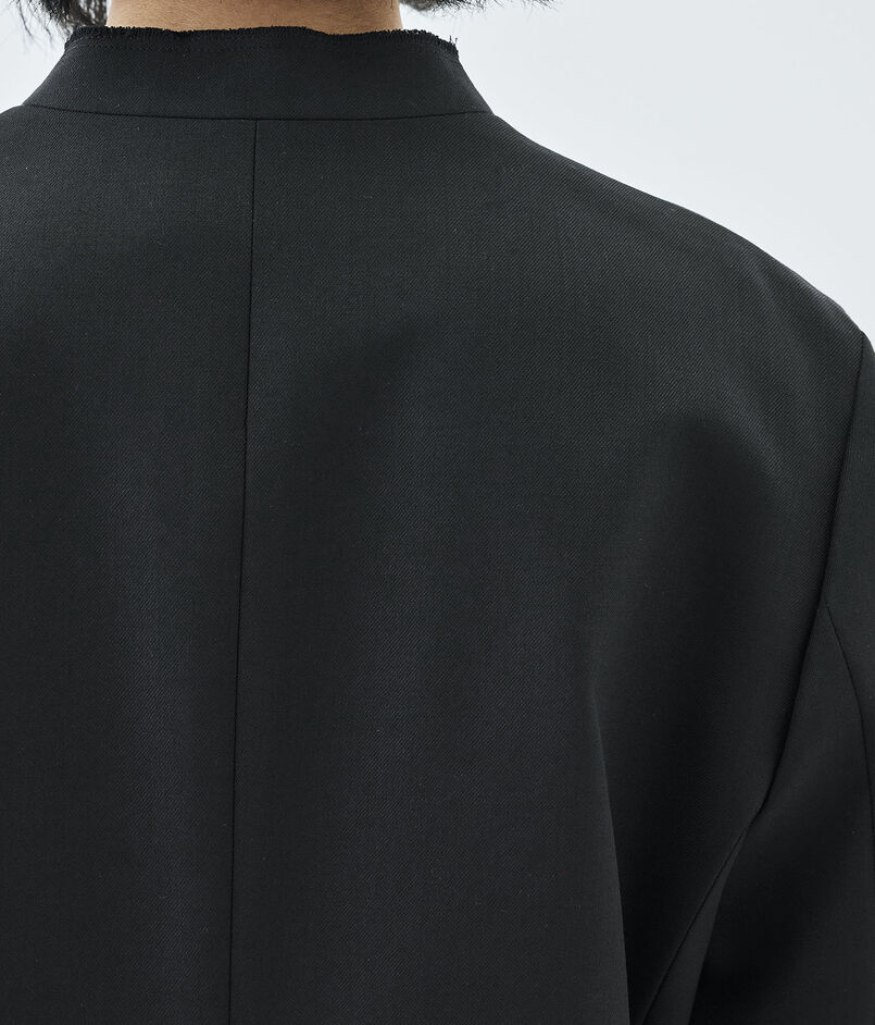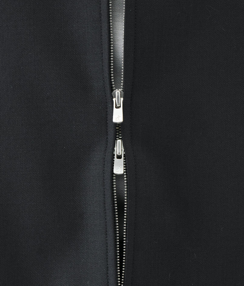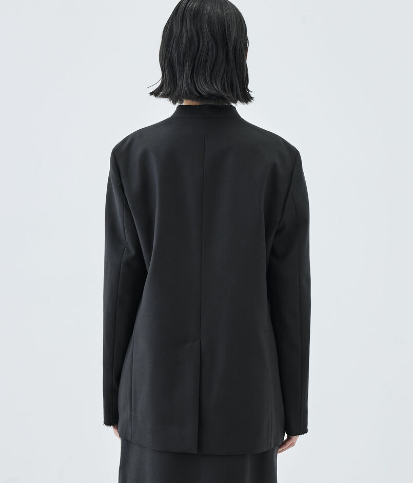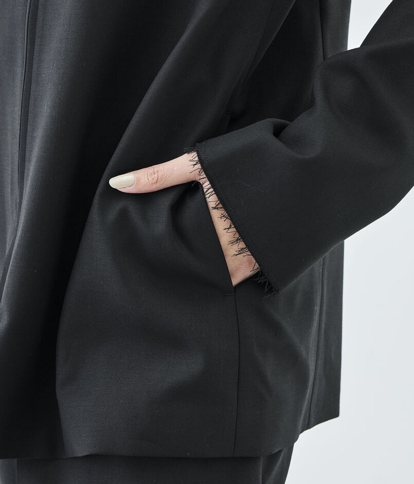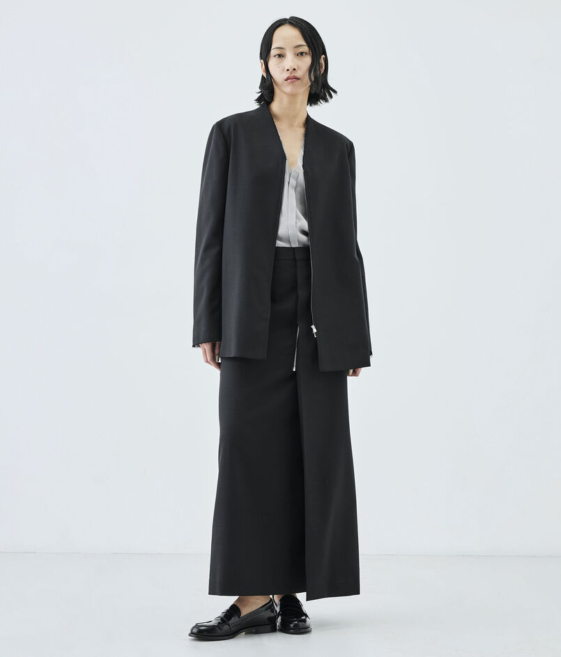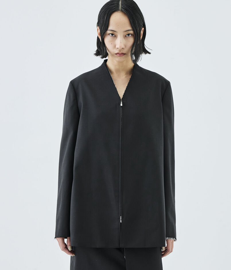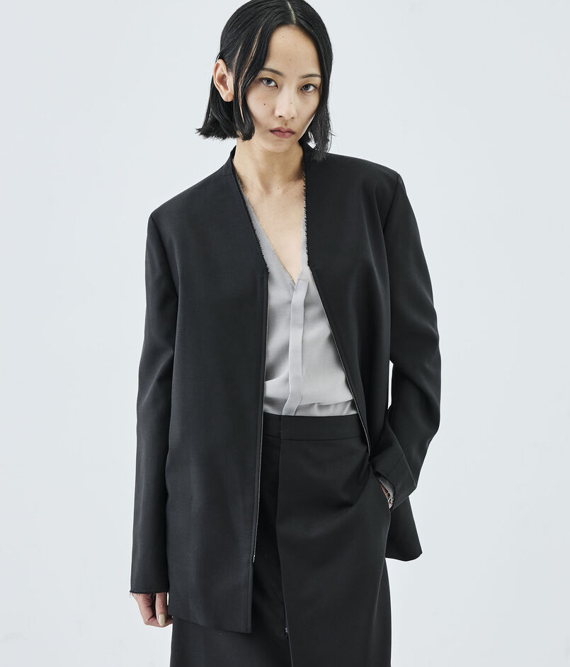 構築的なシルエットの中にブルゾンの要素を入れ込んで仕上げた、気負いせず、しかしながらきちんと見えもするジャケット。