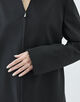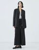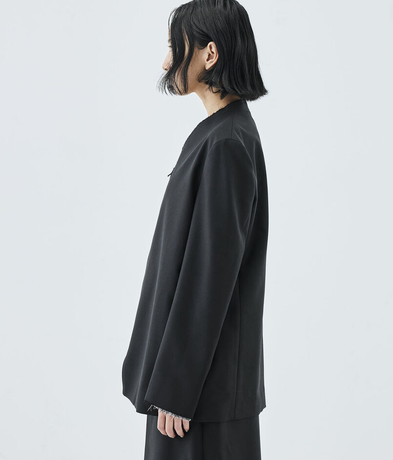 断ち切りにした襟ぐりで重たさを感させず、シンプルながらも存在感を放つアイテム。