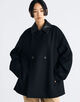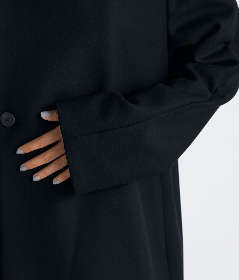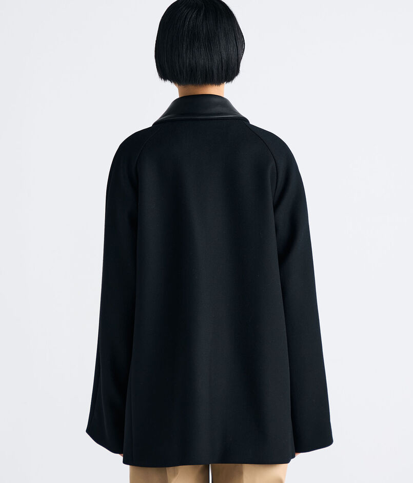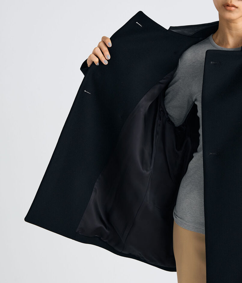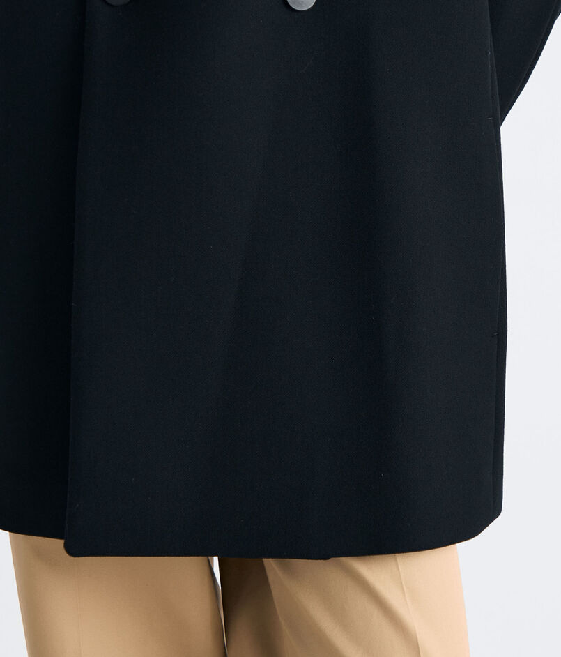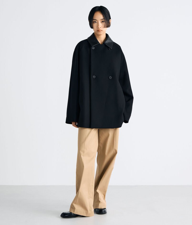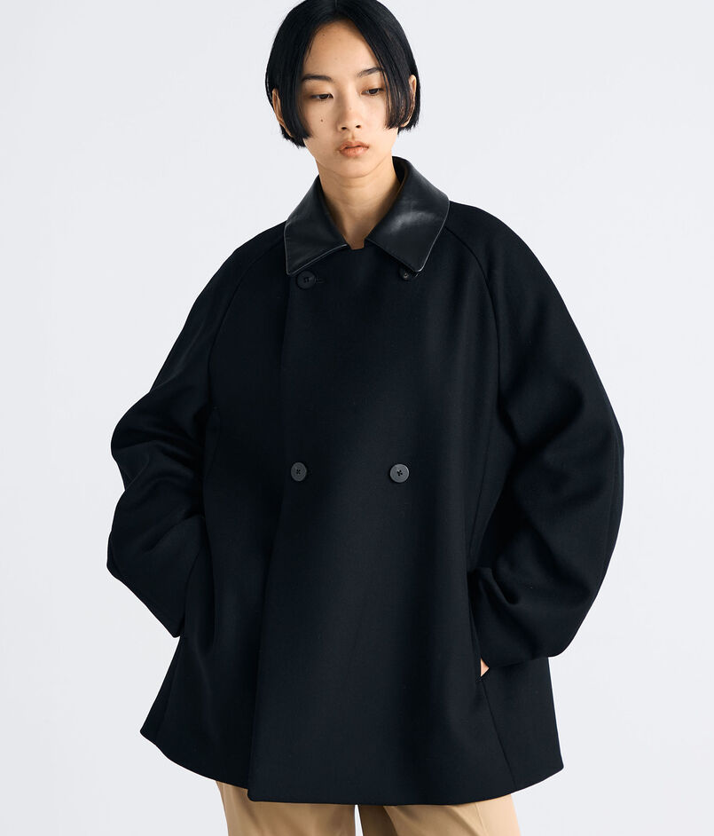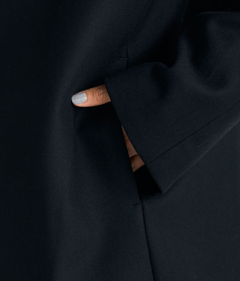 温かみのあるタッチの素材感と上品な光沢感が特徴の生地を使用したショートコート。