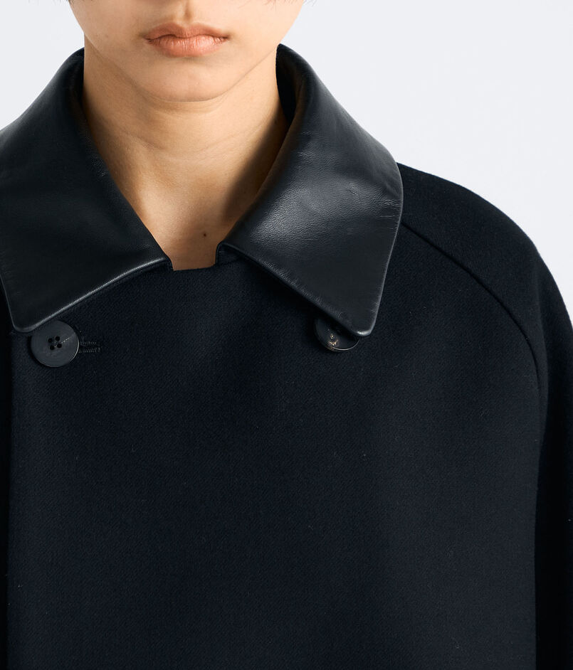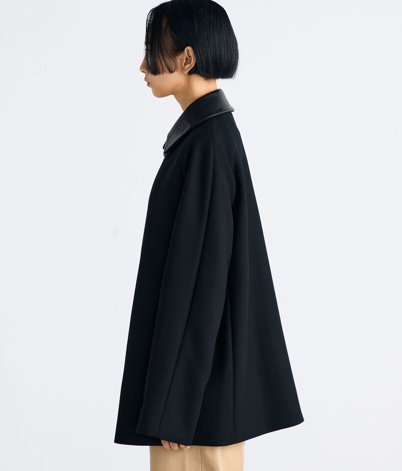 襟元には、柔らかな肌触りと実用性を兼ね備えたウォッシャブルレザーをあしらい、異素材のコントラストが洗練されたアクセントに。